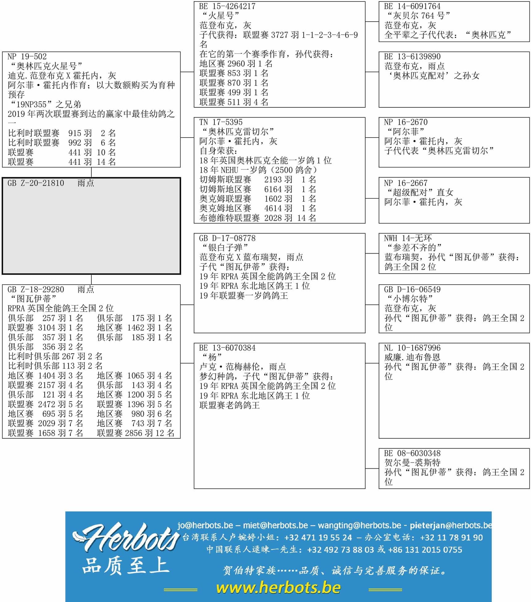 “图瓦伊蒂”子代,“图瓦伊蒂”荣获:19 年RPRA 英国全能鸽鸽王全国2 位19 年RPRA 东北部地区鸽王1 位19 年林肯郡联盟赛/省赛鸽王1 位19 年RPRA 卓越精英赛1 位19 年RPRA 精英奖2 位