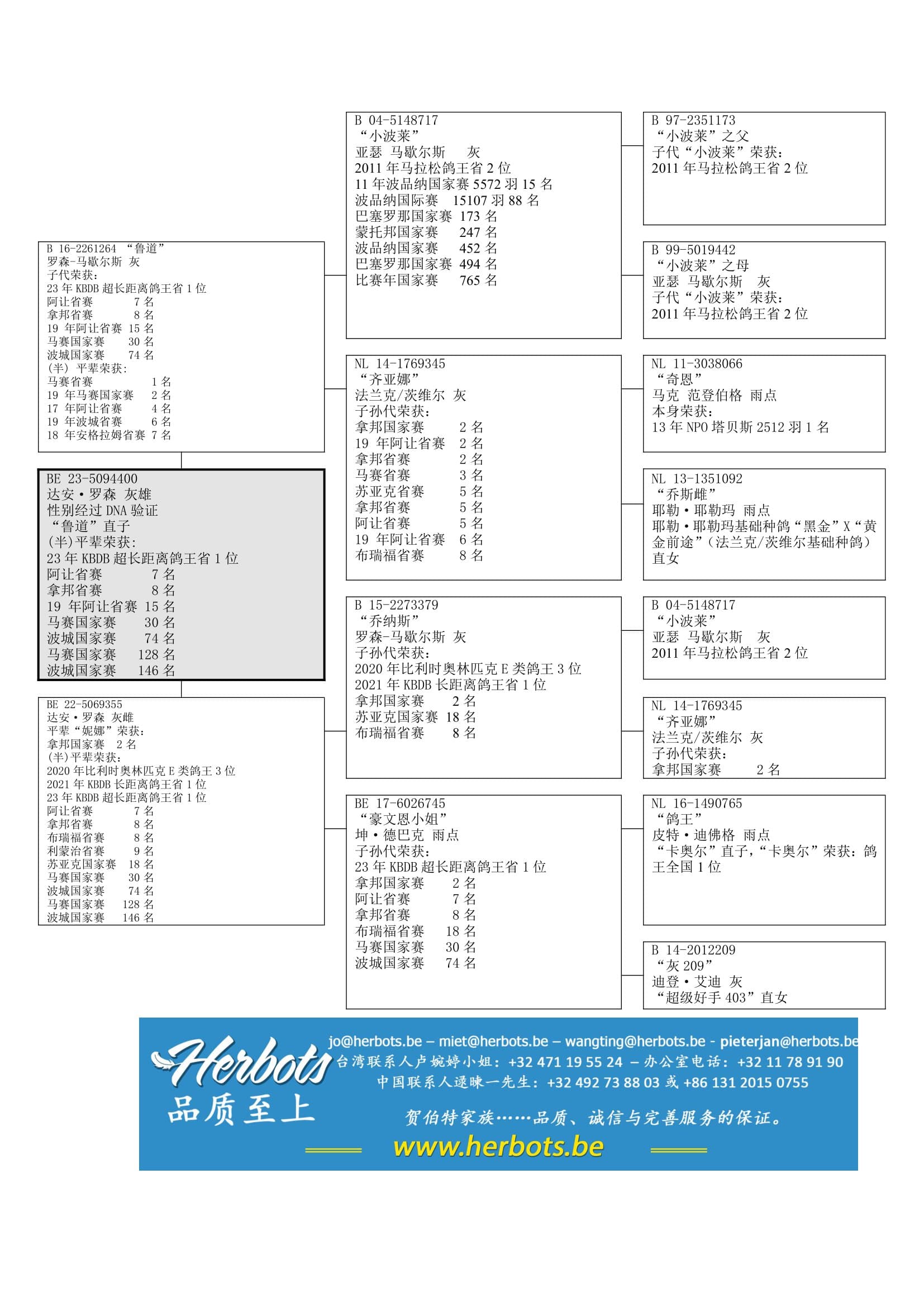 “小波莱” (获得: KBDB鸽王省2位 – 波品纳国家赛 5,572羽15名) x “齐亚娜” (法兰克 茨维尔原舍 – 是NPO 塔贝斯1名的