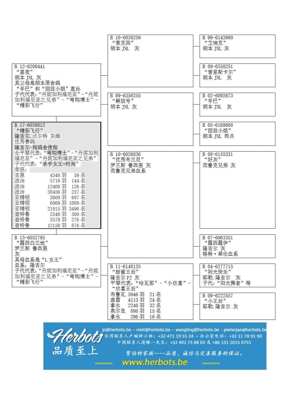 Born out “Good Branne” (strain: Van Loock x Roziers Jelle) x “Sweet Queen” (won: 21st Blois 3,946b. 24th Gueret 4,113b. – 32nd Noyon 2,240b. – 15th Orleans 898b. – 16th Noyon 296b. - original Roziers Jelle  - sister to “Havana”, “Little Delight”, “Queens Delight”)