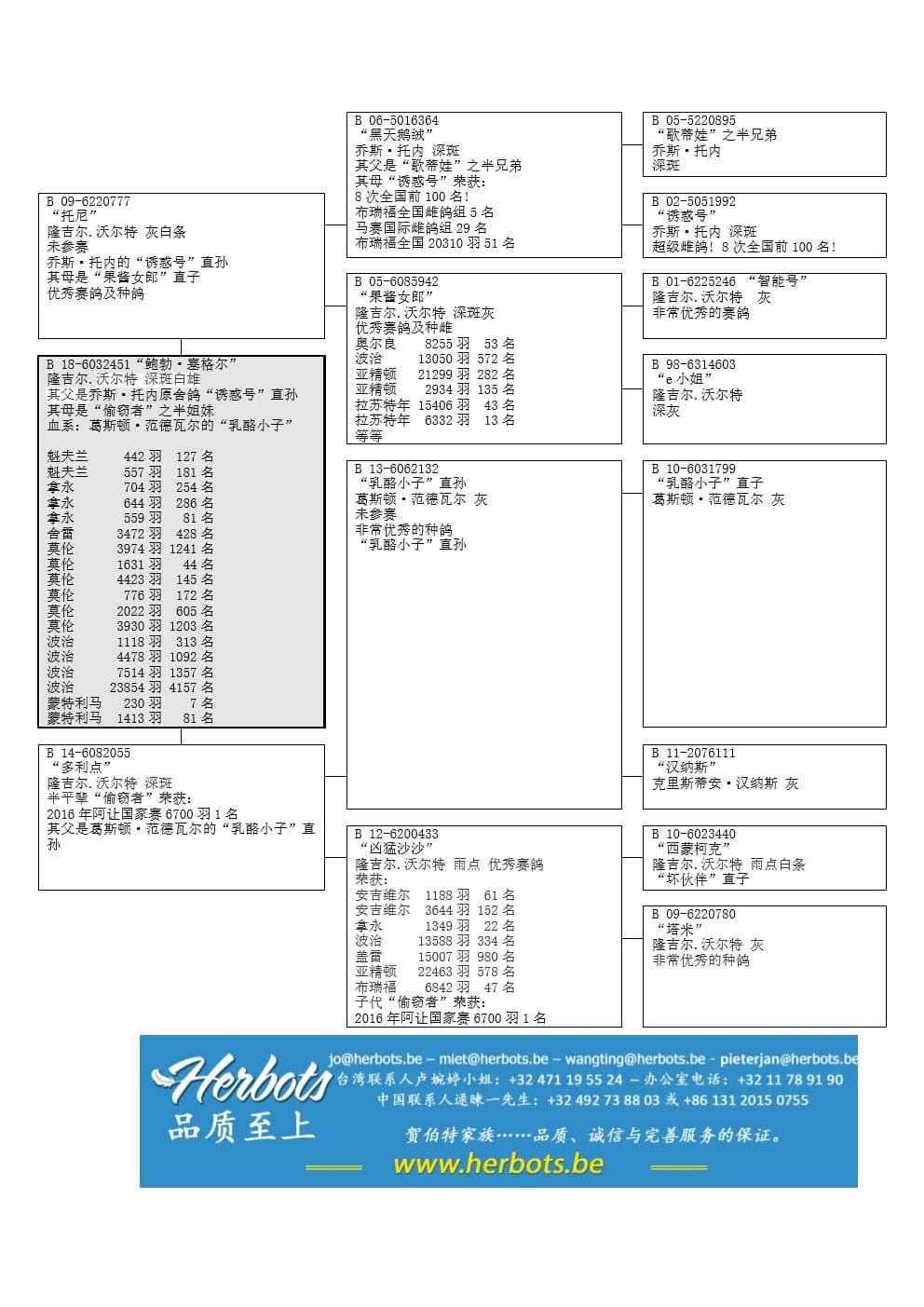 “黑天鹅绒” (托内原舍 – 其父是“歌蒂娃”之半兄弟 - “诱惑号”直子, “诱惑号”荣获8次全国前100名) x 顶级雌鸽“果酱女郎”作出