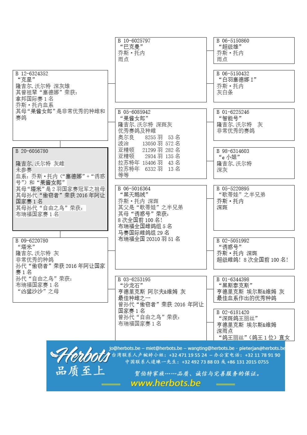 “巴克曼” (100% 托内 – 拿邦国际赛1名的“塞德娜”直孙) x 顶级雌鸽“果酱女郎”(拉苏特年国家赛 15,406羽43名)作出