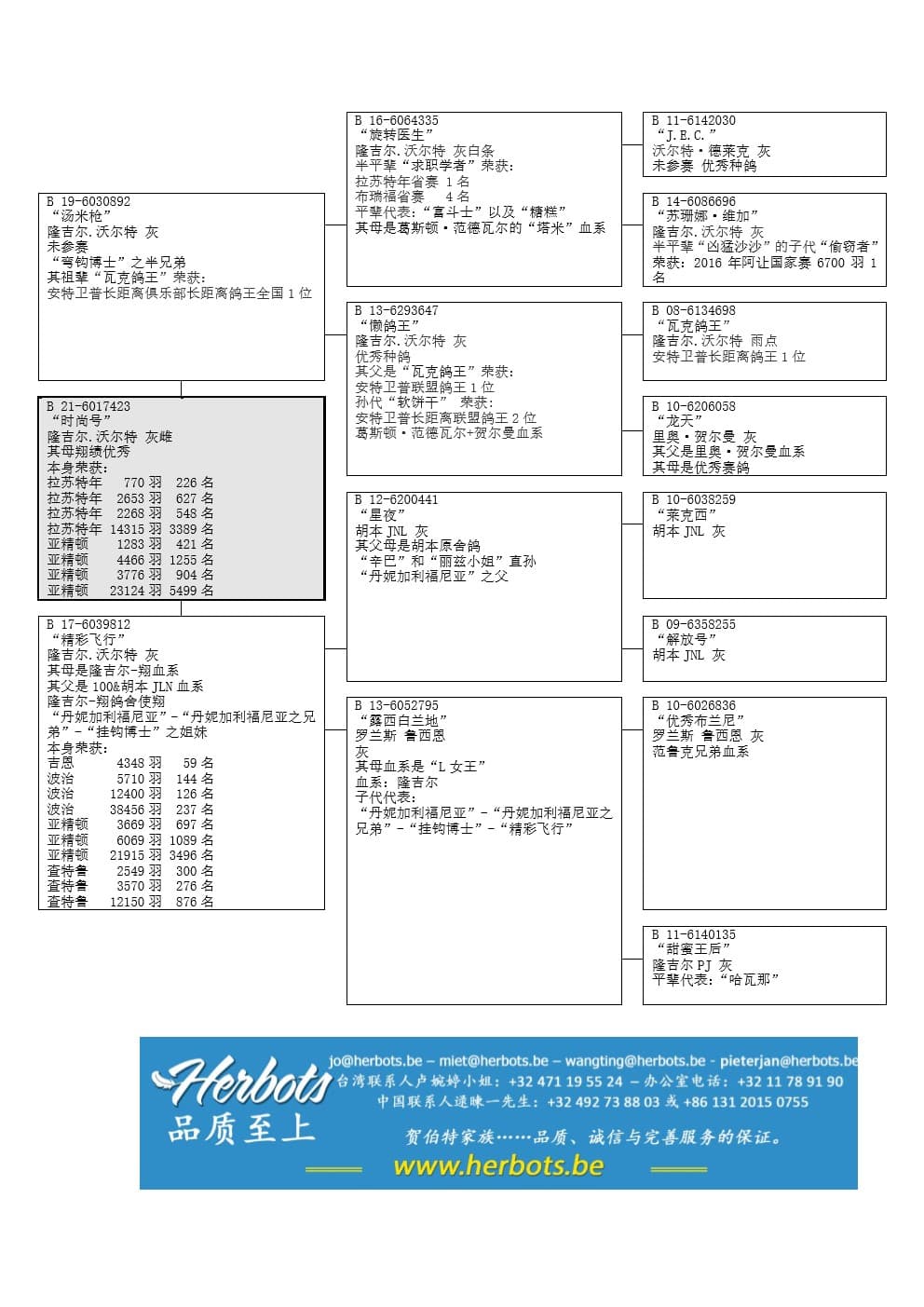 “旋转医生”(半平辈代表:“求职学者”,“富斗士”和“糖糕” ) x “懒鸽王” (“瓦克鸽王”作出,“瓦克鸽王”荣获:安特卫普长距离俱乐部鸽王1位) x“龙天”