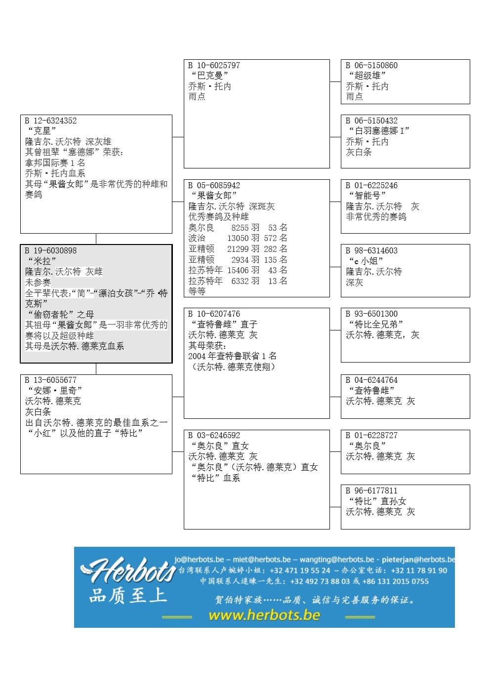 “巴克曼” (100% 托内 – 拿邦国际赛1名的“塞德娜”直孙) x 顶级雌鸽“果酱女郎”(拉苏特年国家赛 15,406羽43名)作出