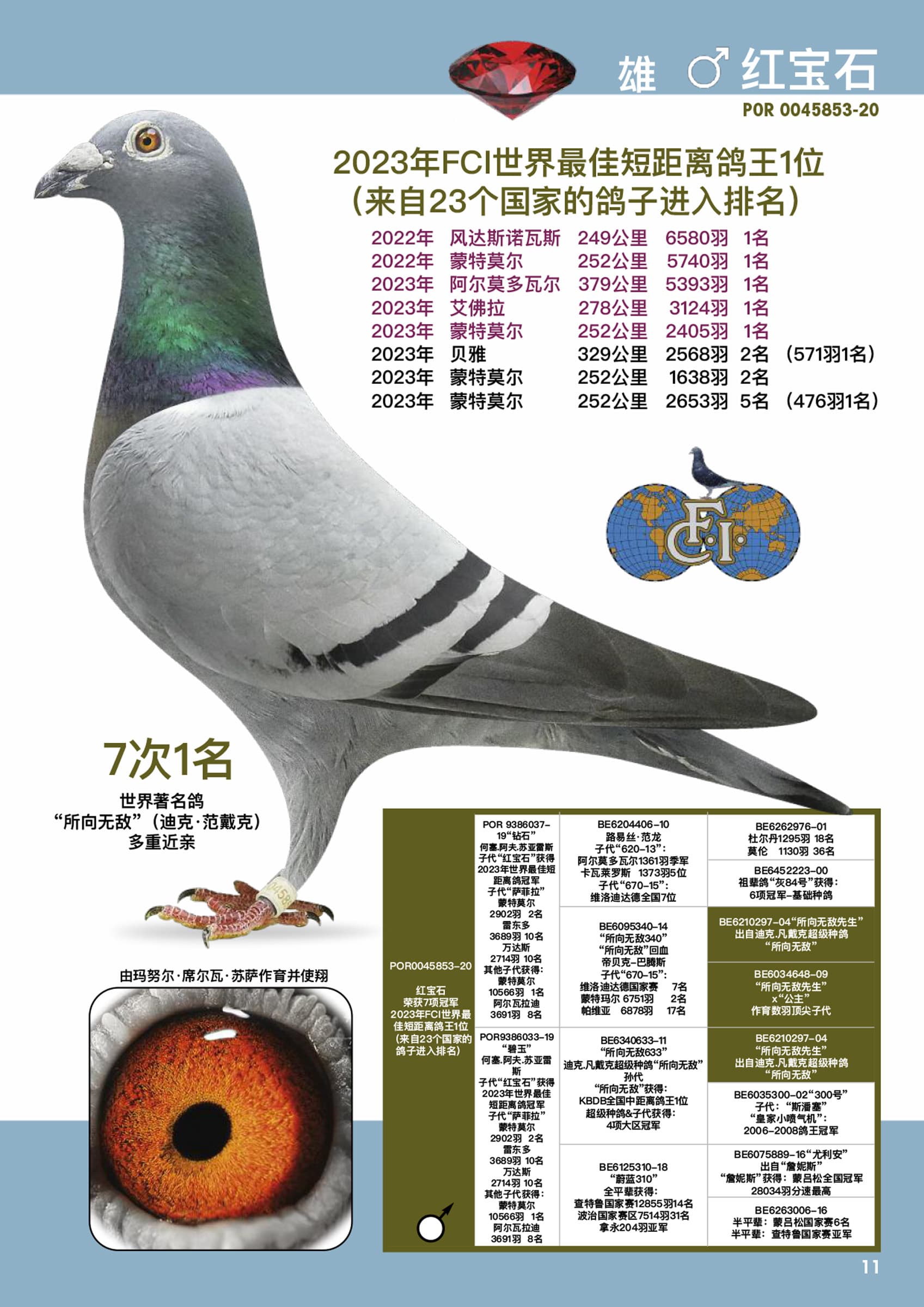 世界著名“红宝石”的 2 羽直接子代鸽、1 羽全兄弟和 1 羽全姐妹