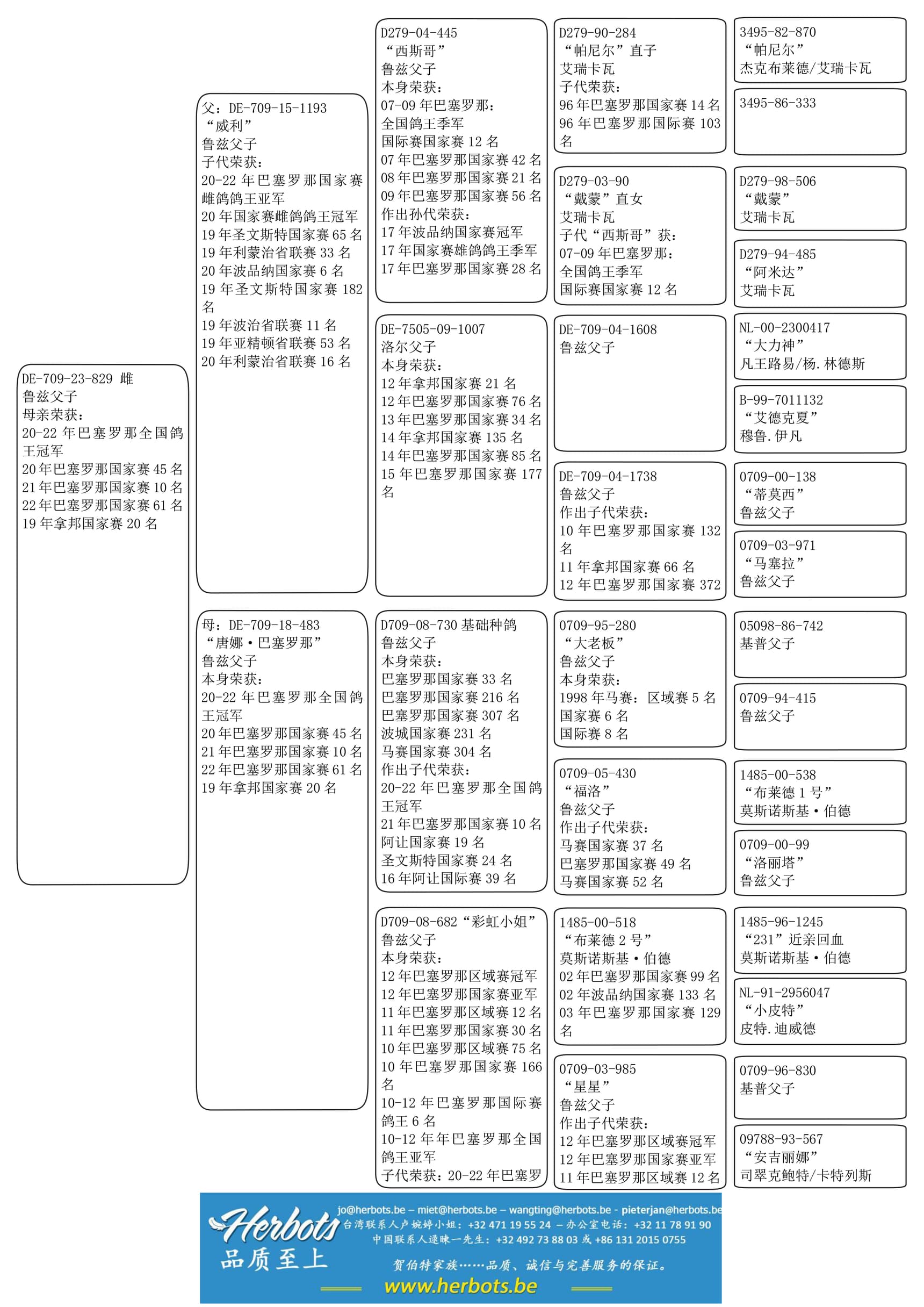 由基础种鸽 “709-08-730” (荣获:巴塞罗那国家赛33名) x “彩虹小姐” (荣获:12年巴塞罗那国家赛亚军 – 11年巴塞罗那国家赛30名 – 10-12年巴塞罗那国际赛鸽王6名) 作出的直女
