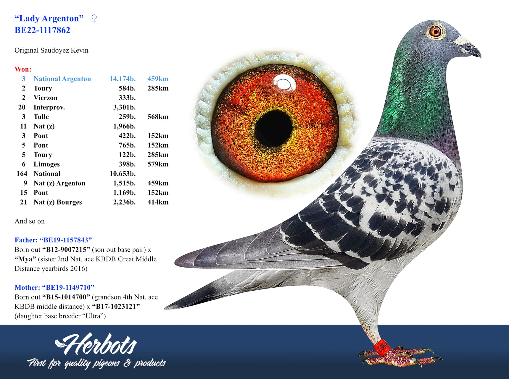“B15-1014700” (KBDB中距离鸽王全国4位直孙)