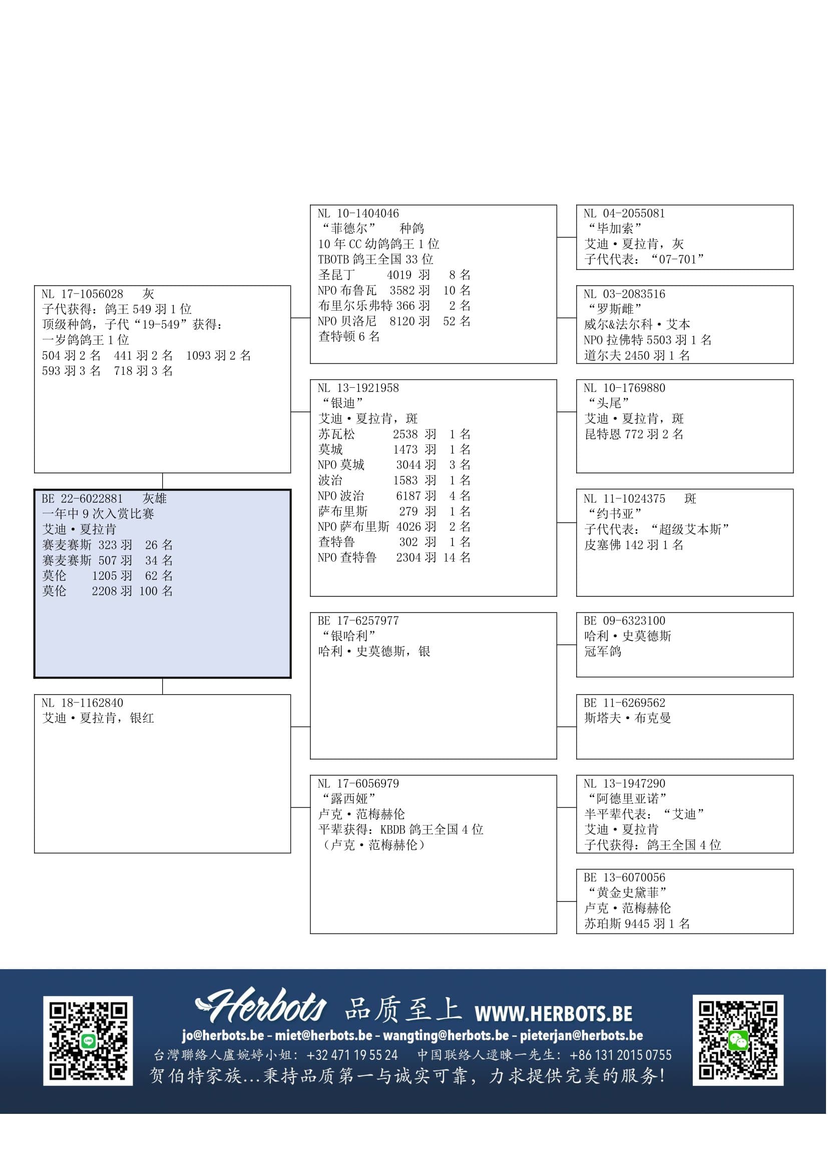 “银哈利” (哈利·史莫德斯原舍) x “露西娅” (卢克·范梅赫伦原舍 – 同父母平辈获得:KBDB鸽王全国4位)作育