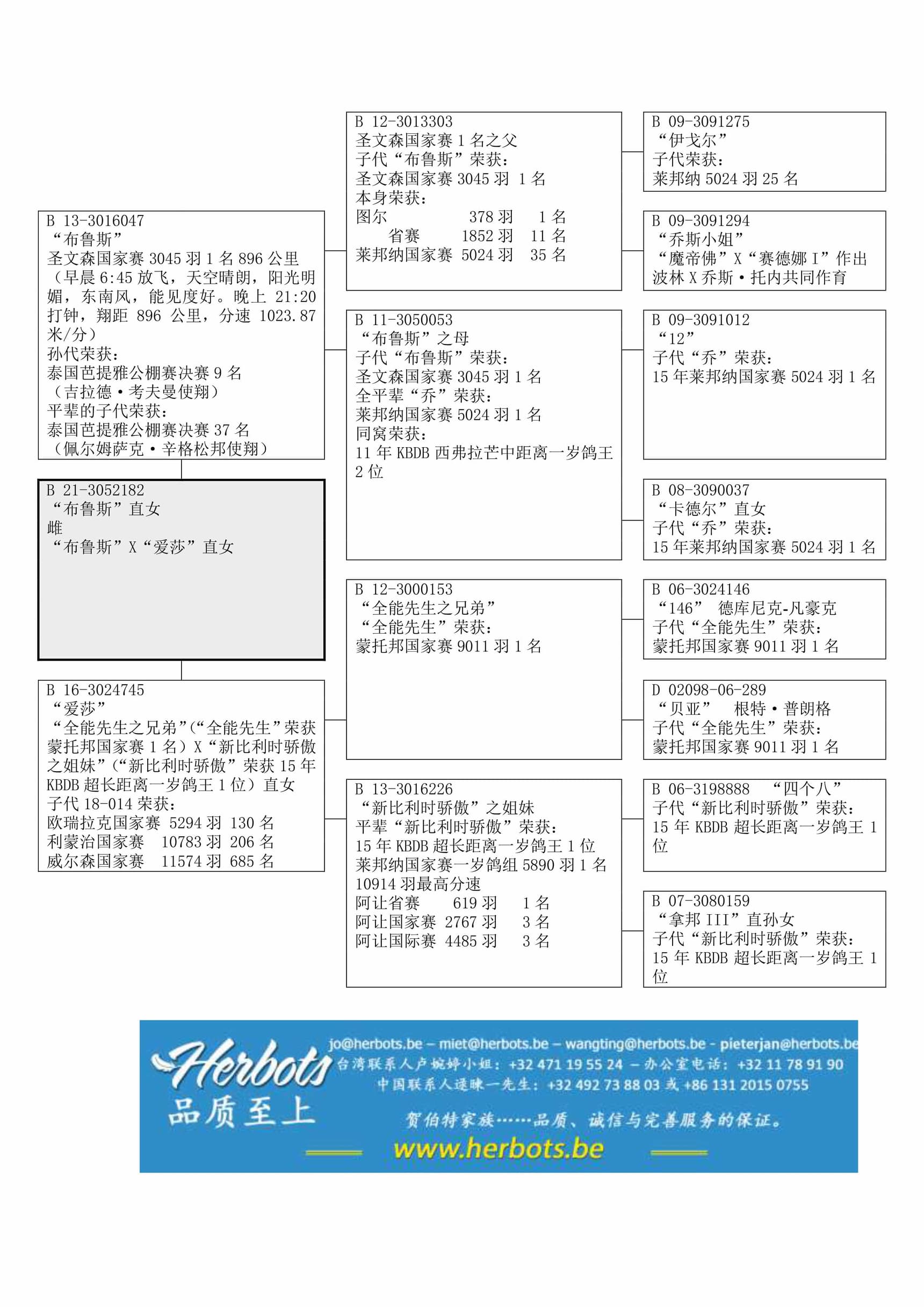 “全能先生之兄弟” (全平辈荣获蒙托邦国家赛 9,011羽1名) x “新比利时骄傲之姐妹” ( “新比利时骄傲” 荣获: 2015年KBDB超长距离一岁鸽王全国1位 – 莱邦纳国家赛 5,890羽1名/ (10,901羽分速最高 – 阿让国际赛 4,485羽3名) 作出