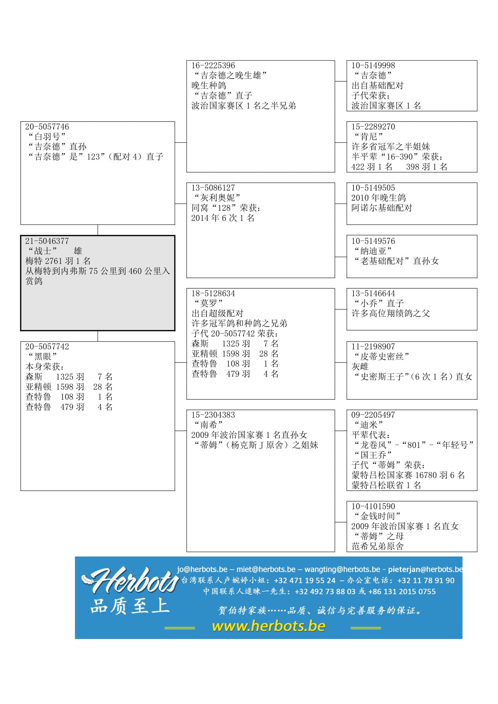 “莫罗” (多羽不同冠军鸽之兄弟) x “南希” (波治国家赛1名直孙女- 杨克斯 J.) 作出