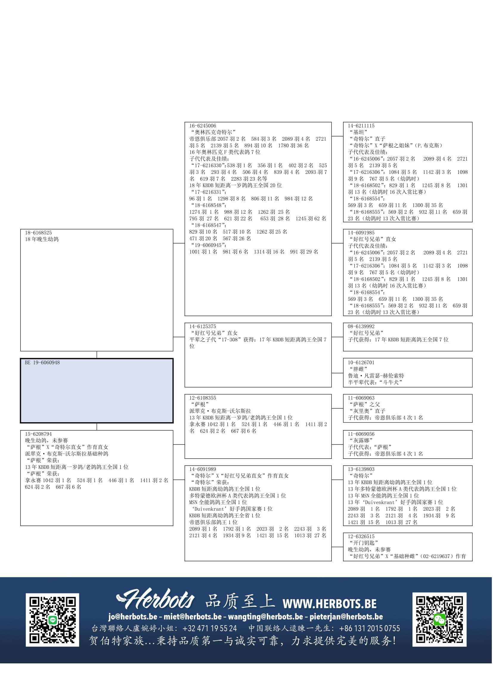 在世界各地的不同鸽舍培育了多羽顶级赢鸽!