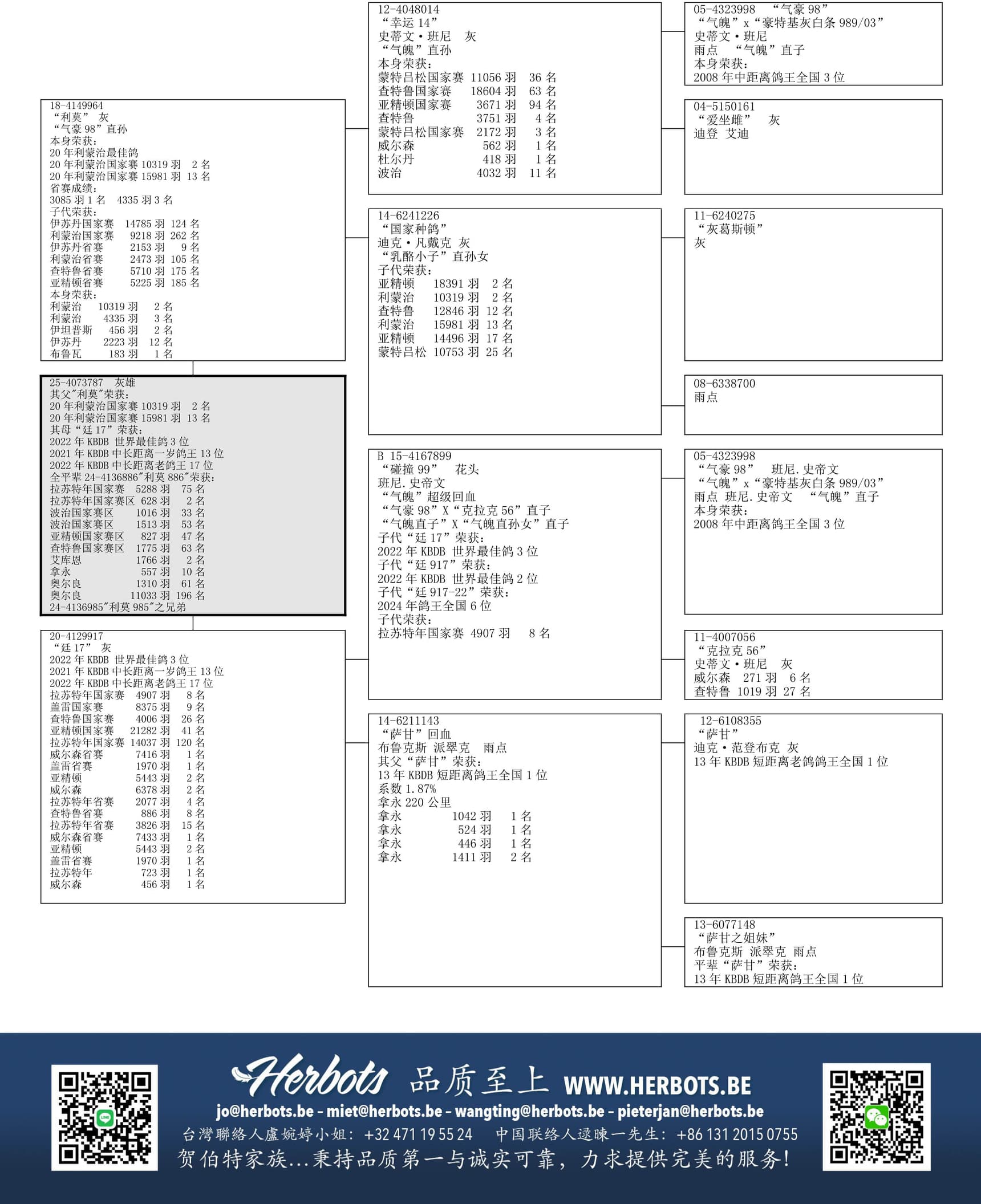– 波治省赛3,544羽21名 – 威尔森省赛 5,024羽62名 -
