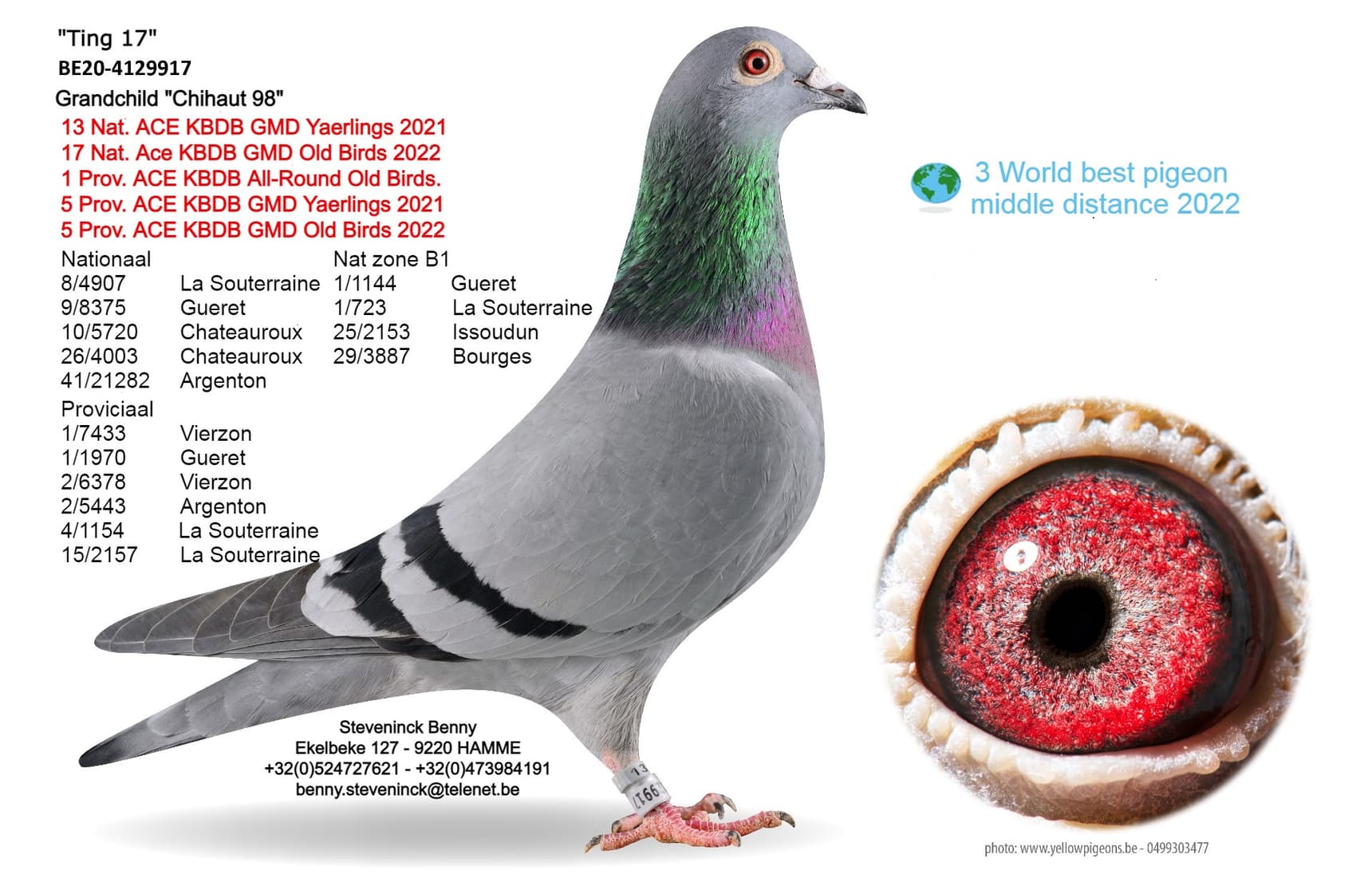 全平辈 “廷 917”在2022荣获: KBDB中长距离一岁鸽王