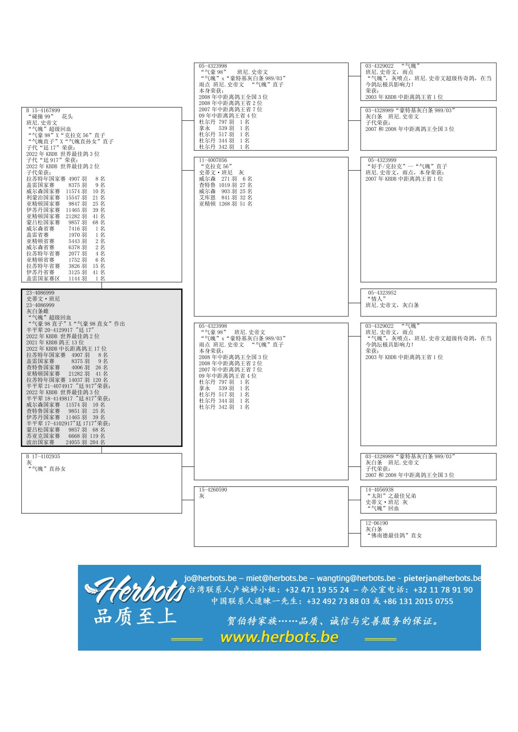 “ 气豪98”(冠军鸽以及基础种鸽直女