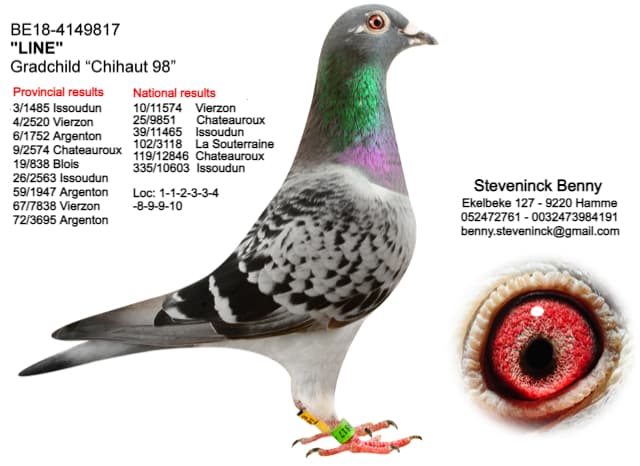 “气豪 98” (08年KBDB中距离鸽王全国3位- 是省鸽王以及基础种鸽“气魄”直子) x “克拉克 56” (KBDB鸽王省1位的“克拉克”直女 – “气魄”直孙女)直子