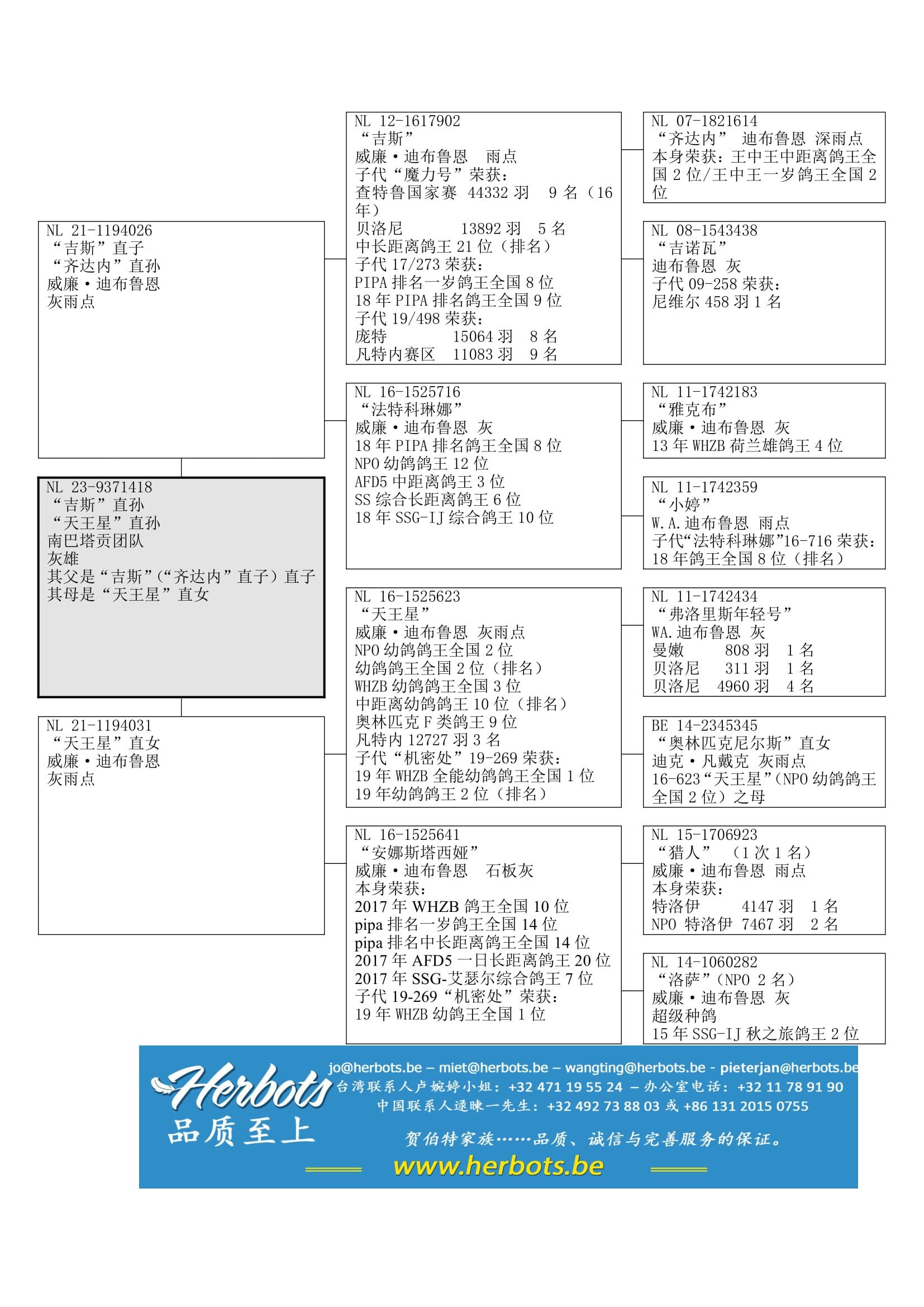 17年WHZB鸽王全国10位 – 排名鸽王全国14位