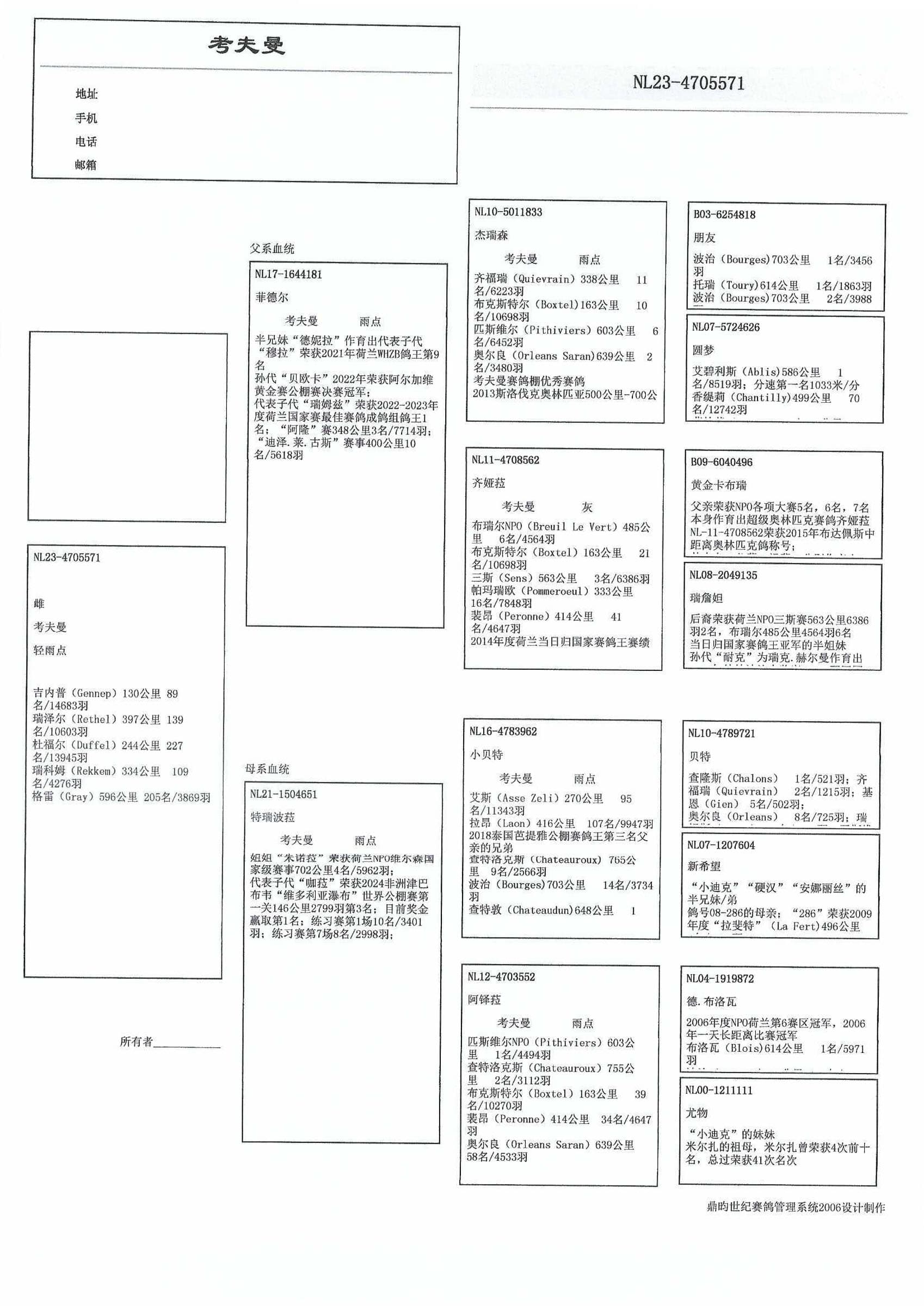 1名 全国鸽王“全能” 成鸽组 ’22-‘23