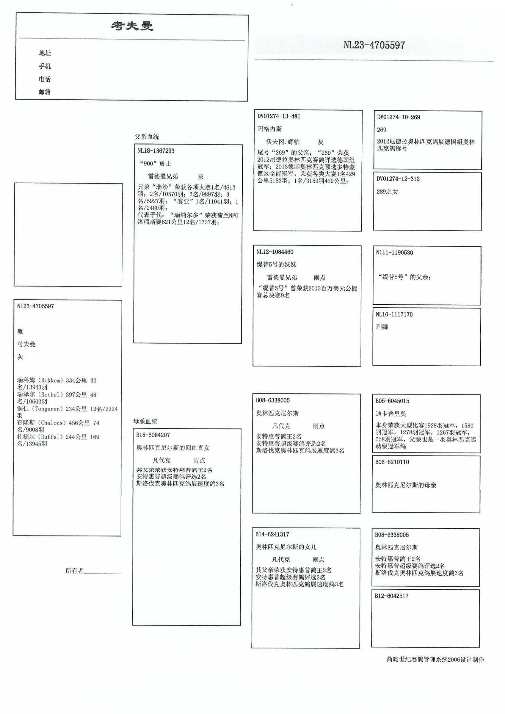 代表孙代12 次 1名 NPO/全国/省级入赏 – 代表后裔 1名奥林匹克鸽, 1名 全国鸽王和 1名 NPO