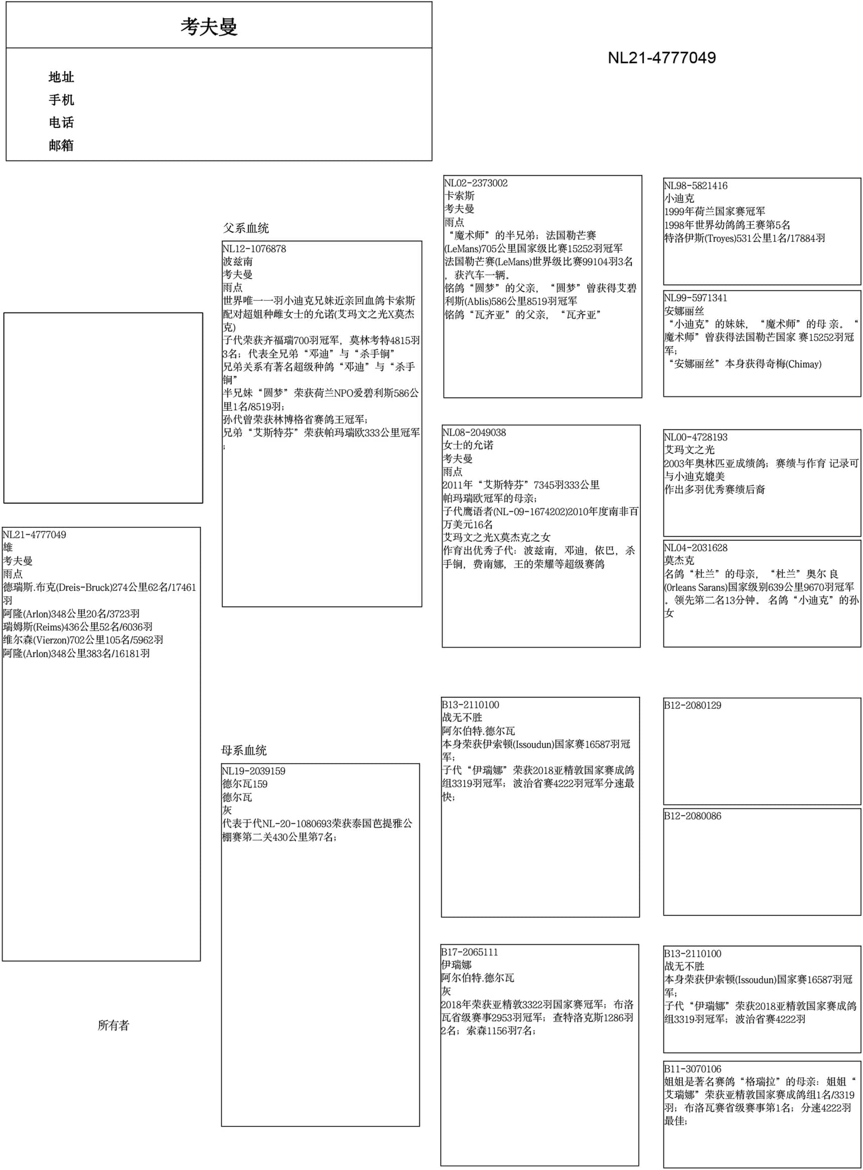 “卡索斯” ” (基础种鸽和 出自配对: