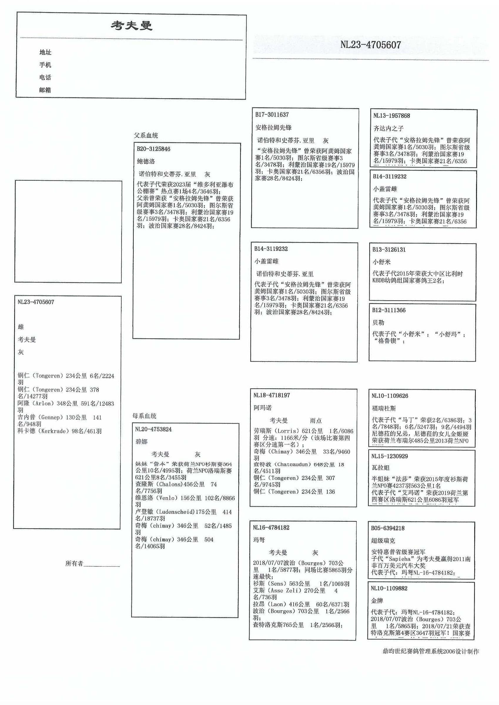 “安格拉姆先锋” (1名 全国 安格拉姆 5,030 成鸽组– 最快9,555羽 - 3名 省级 图尔斯 3,478羽 – 71名 省级 蓬图瓦兹 18,184羽 - 90名 全国 利蒙治 7,236羽 ) x “小盖雷雌”