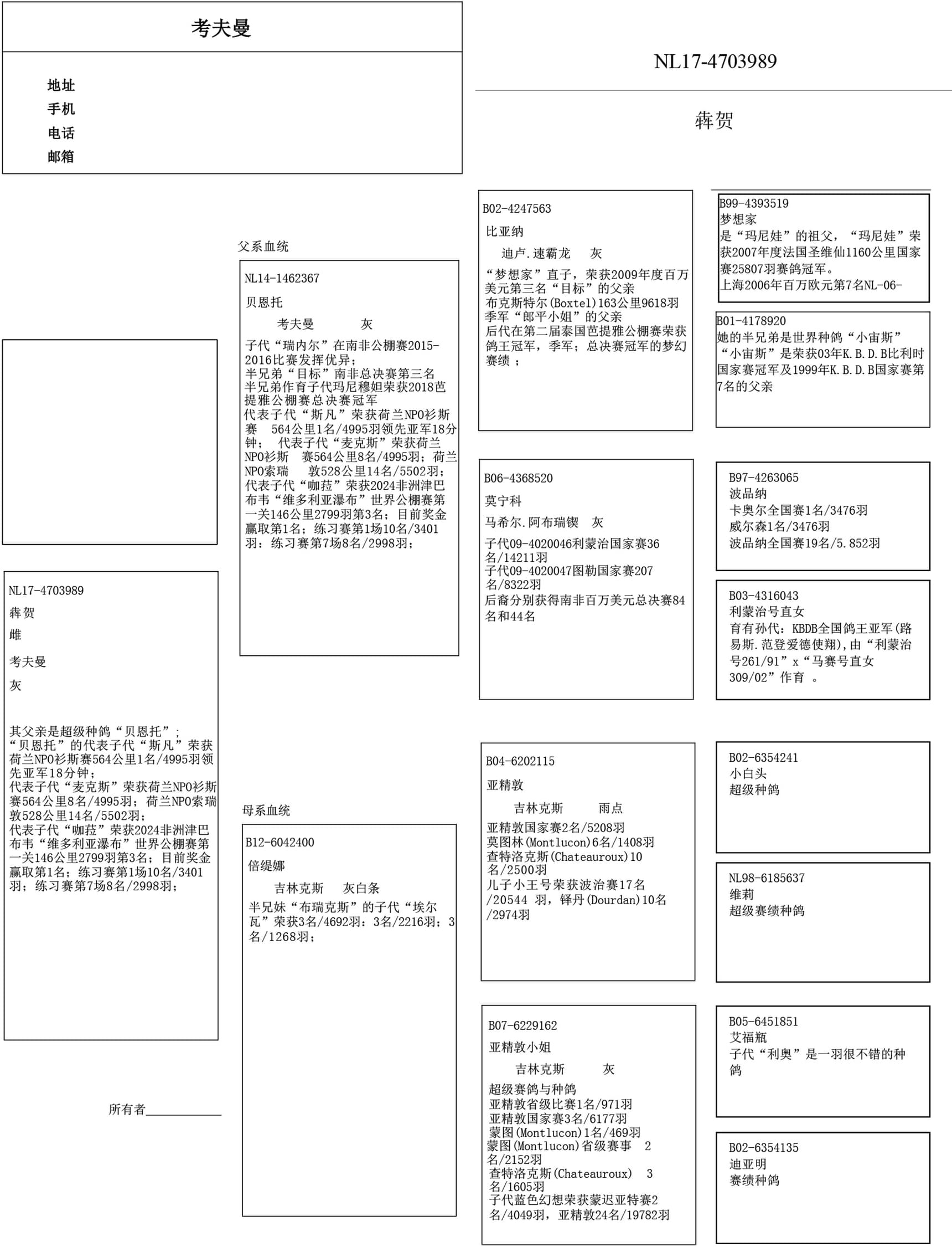 出自: “比亚纳” (基础种鸽 - 迪卢.速霸龙原舍. “梦想家”之子) x “莫宁科”