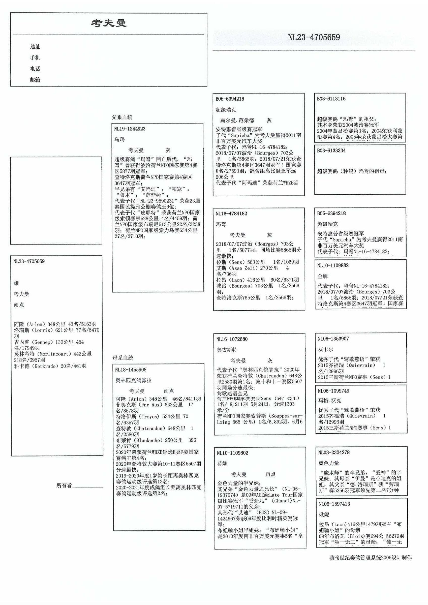 4名 全国鸽王长距离WHZB/TBOTB
