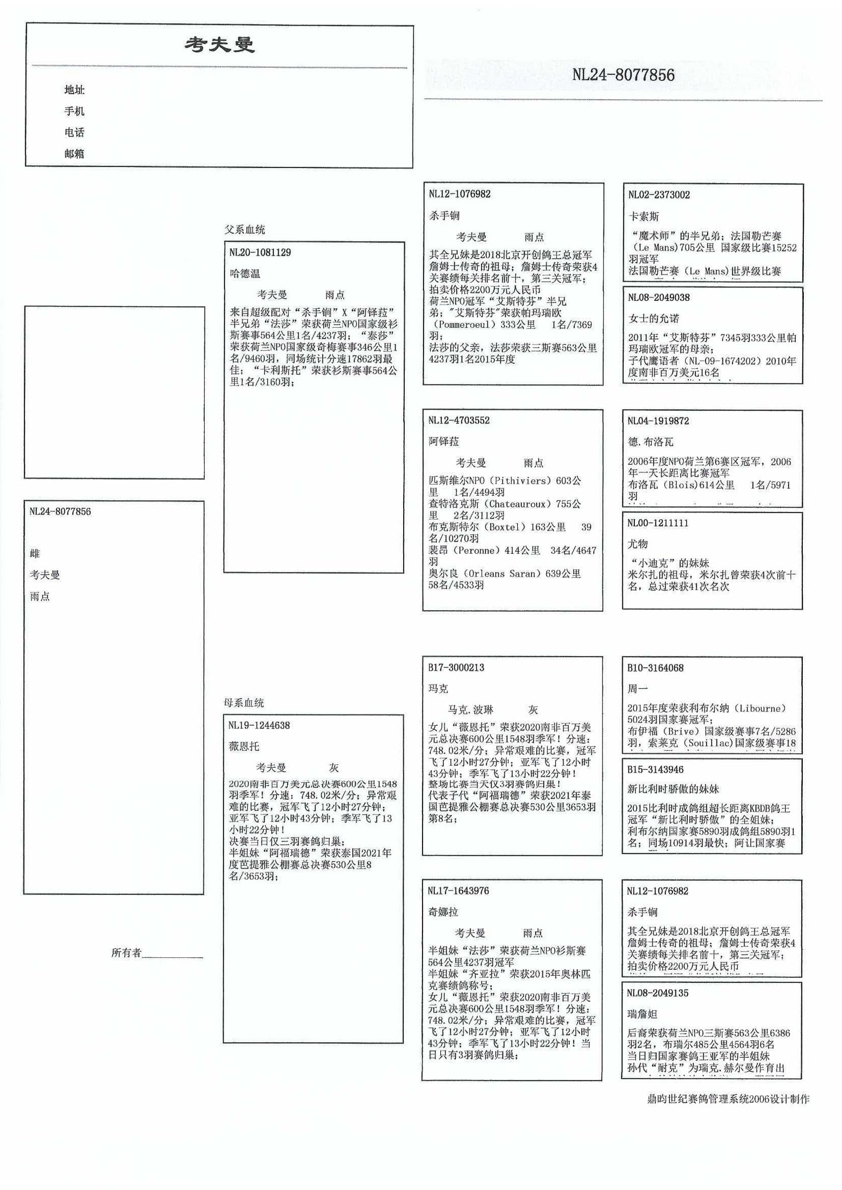 出自 “周一” (1名, 7名, 18名, 42名和 81名 全国 入赏) x “新比利时骄傲的妹妹”(全姐 1名 全国 鸽王评选 和 1名 全国 利布尔纳 入赏 “新比利时骄傲”)