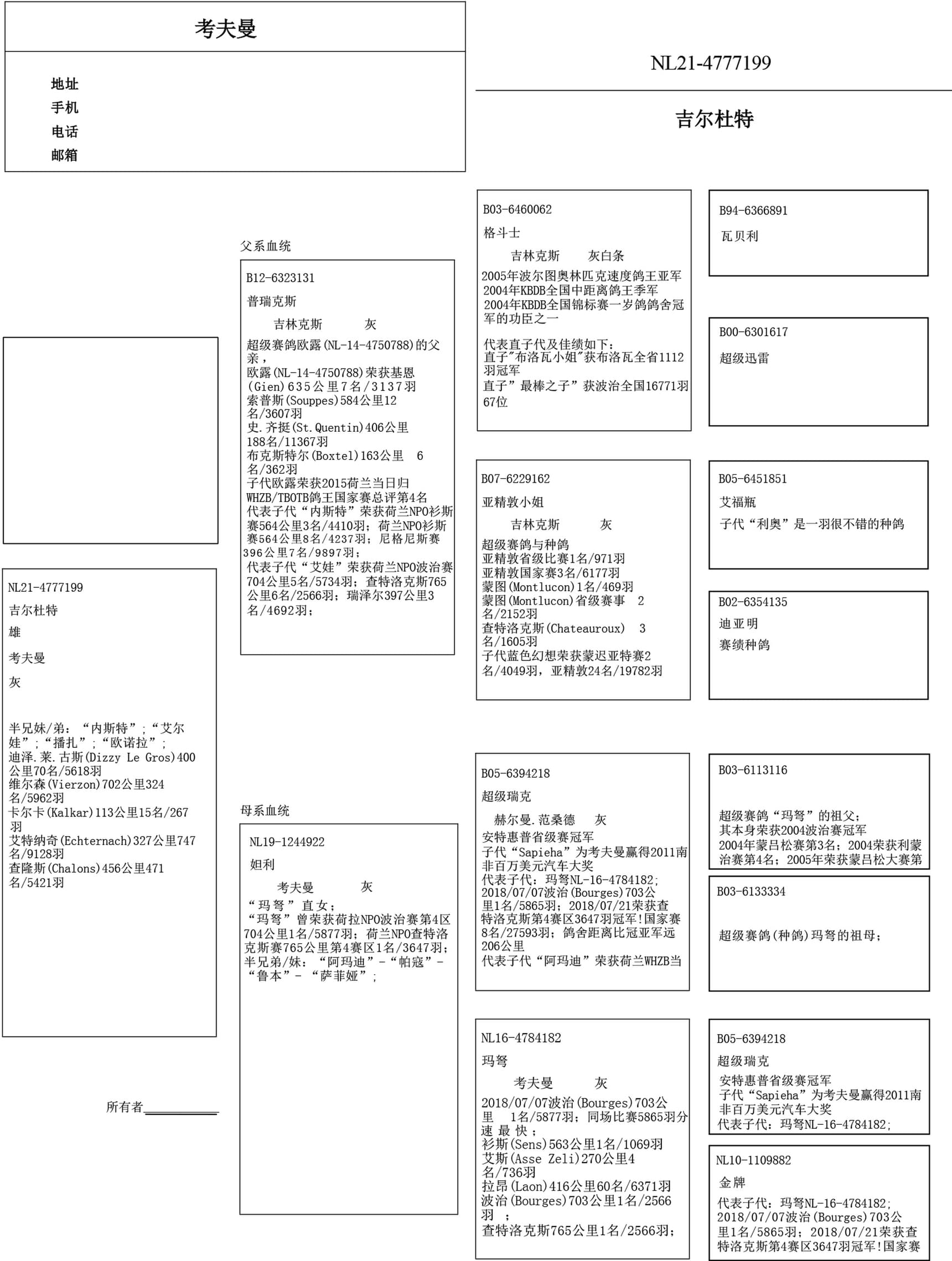 4名 国家级长距离鸽王WHZB/TBOTB
