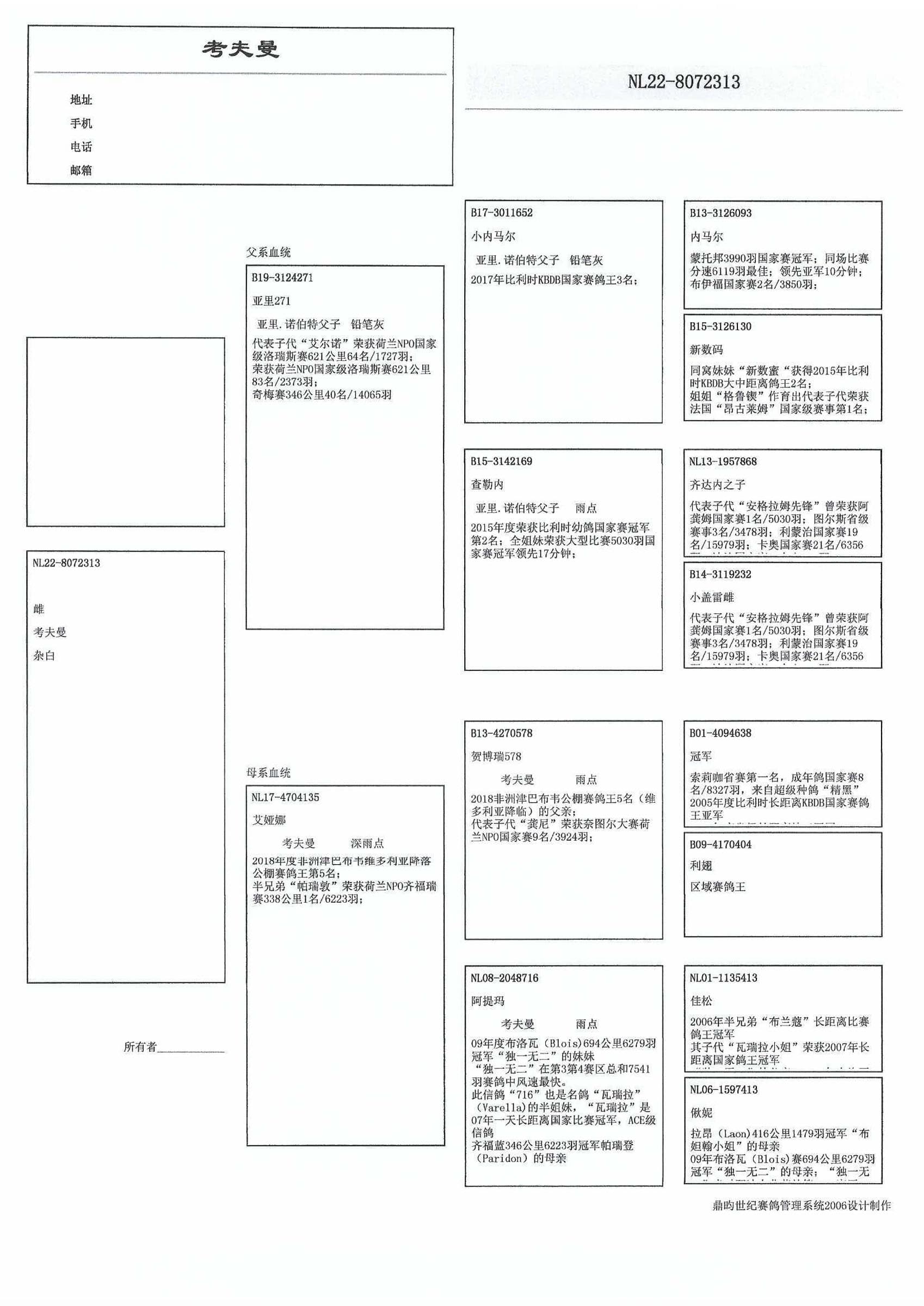 3名 全国KBDB 鸽王排位中距离幼鸽组 ‘17