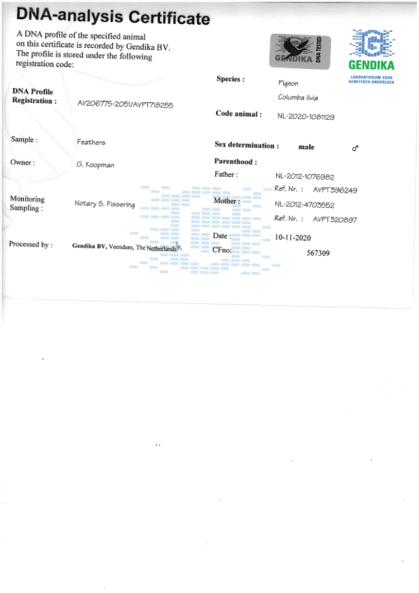 “詹姆士传奇”(1名 北京开创鸽王冠军,拍卖售价约278万欧元