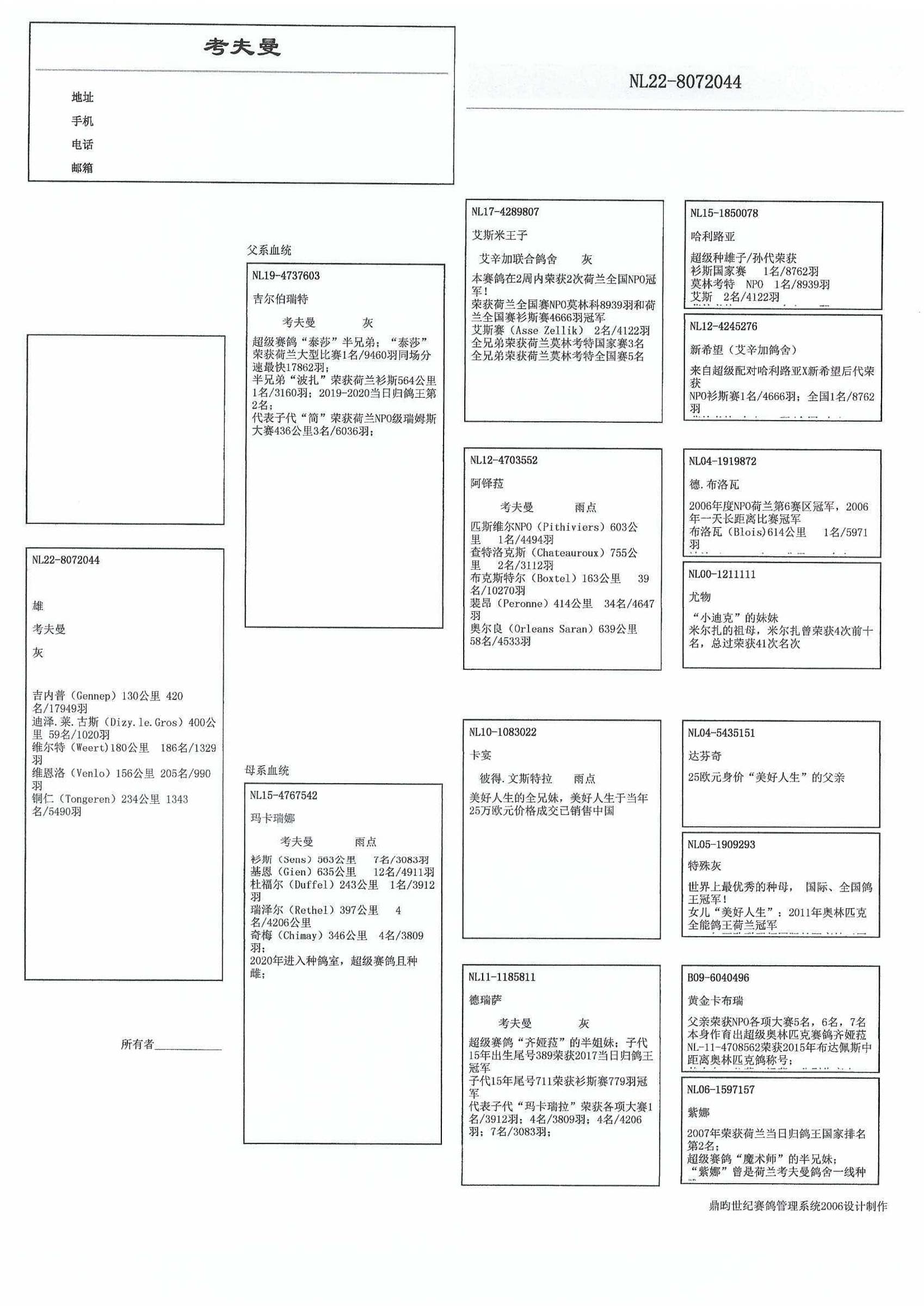 1名 全国鸽王“杜嘉 维塔” 和 “香奈儿5号”)x “德瑞萨”