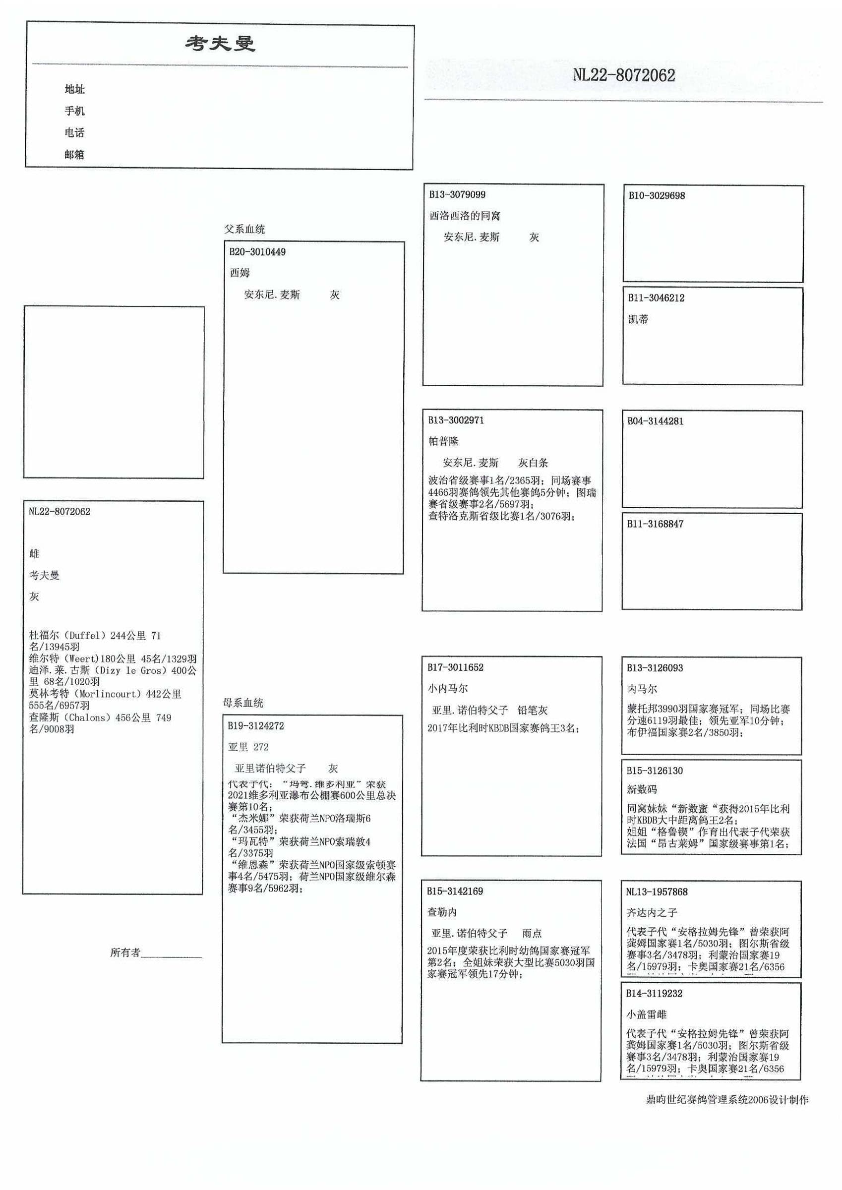 3名 全国鸽王KBDB 中距离幼鸽组 ‘17