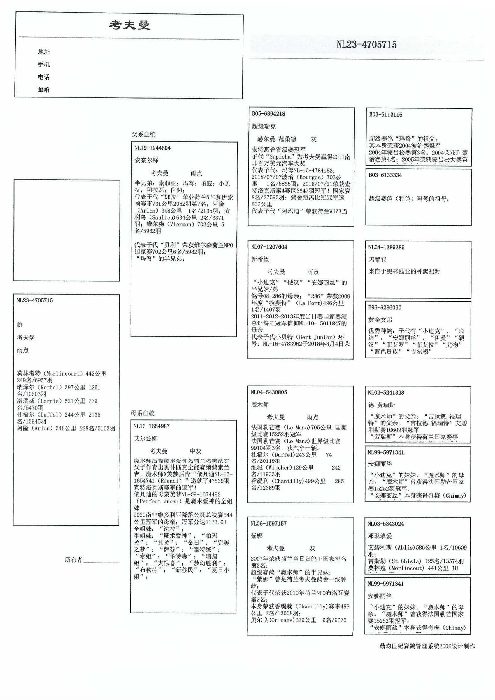 “魔术师” (1名 全国勒芒15,252羽, 3名 分速最快 99,104羽) x “紫娜” (2名全国鸽王NPO 当日归 ’07 和 半姐妹 “魔术师”)