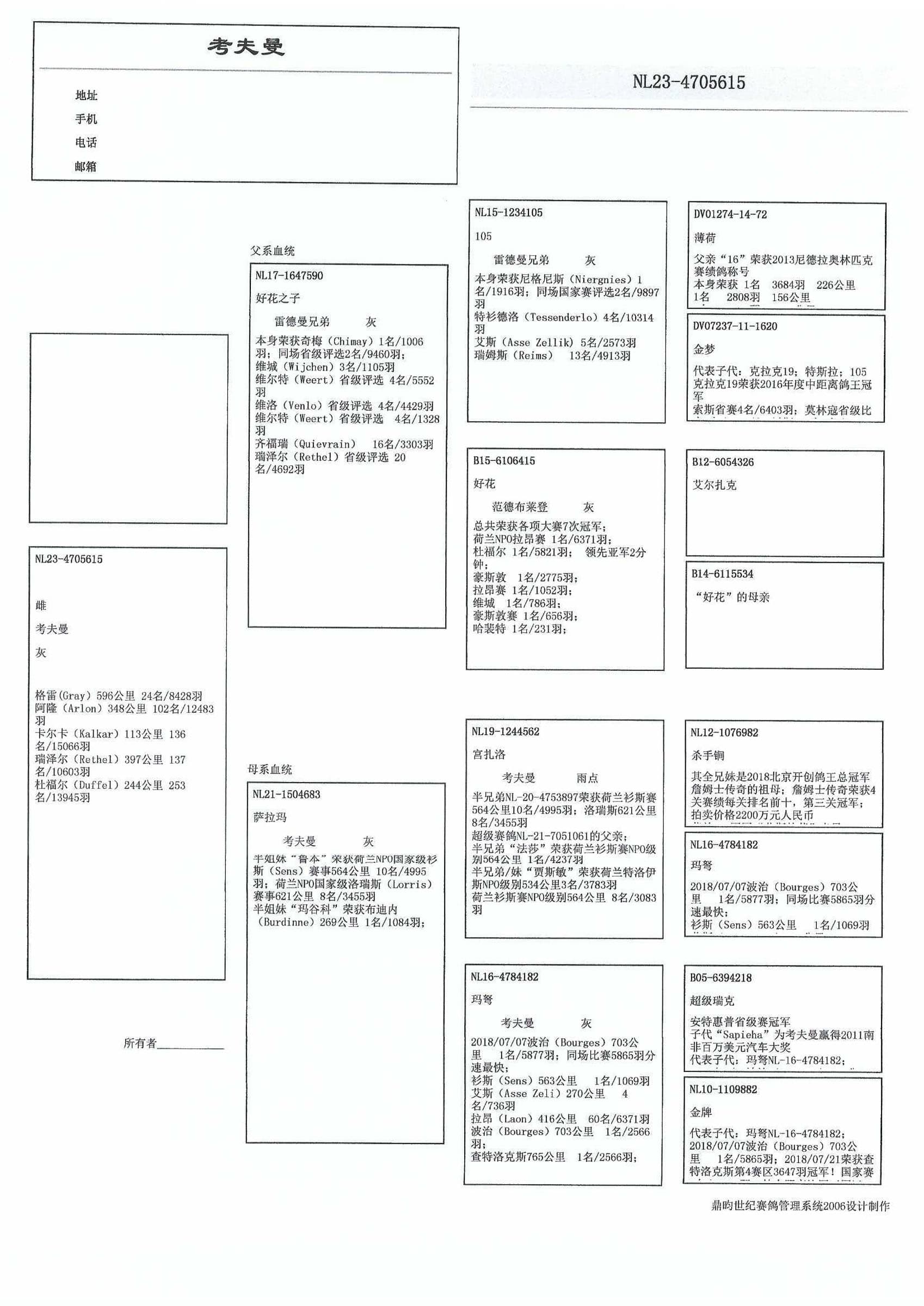 出自:“105” x “好灰” (7 次 1名 – 基础种鸽)