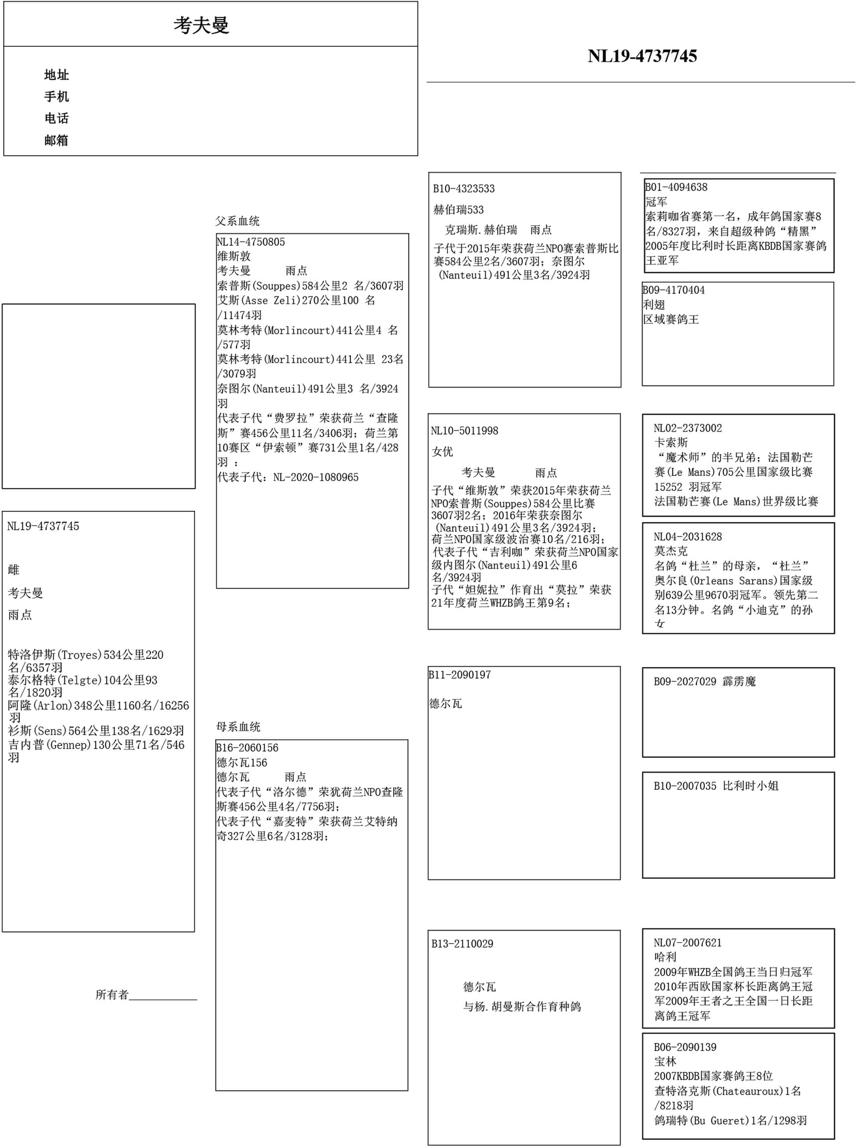 “哈利 ” (杨.胡曼斯原舍) x “宝琳” (8名 全国 鸽王 KBDB /基础种鸽)的孙代