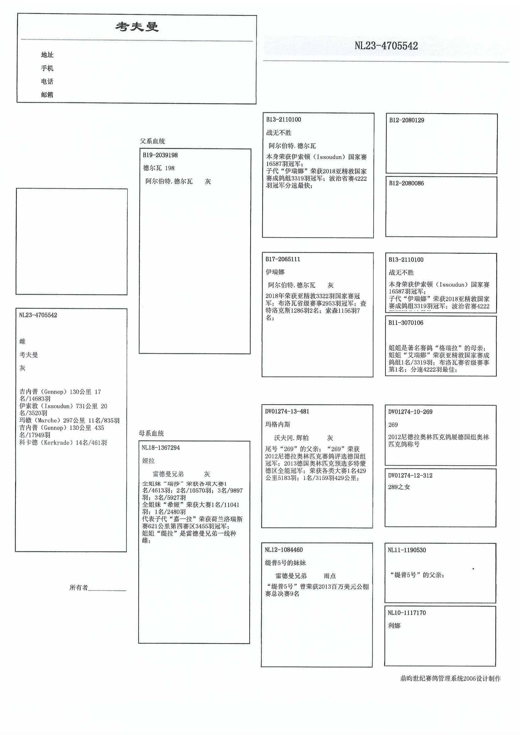 “玛格内斯” (出自:奥林匹克鸽“德269” – 沃夫冈.辉帕原舍) x “缇普5号的妹妹” (全姐1名 NPO 艾瑞斯10,735羽 和 9名 决赛南非百万美元公棚 ’13)