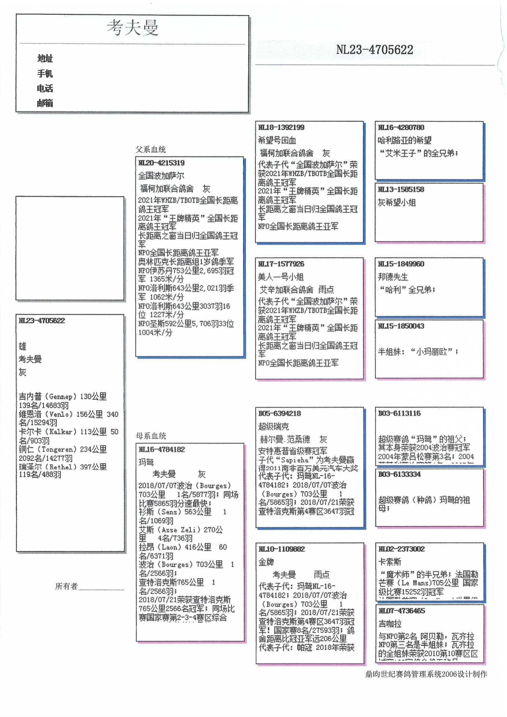 福柯加联合鸽舍 x 杨.胡曼斯鸽舍 (“哈利”血系)