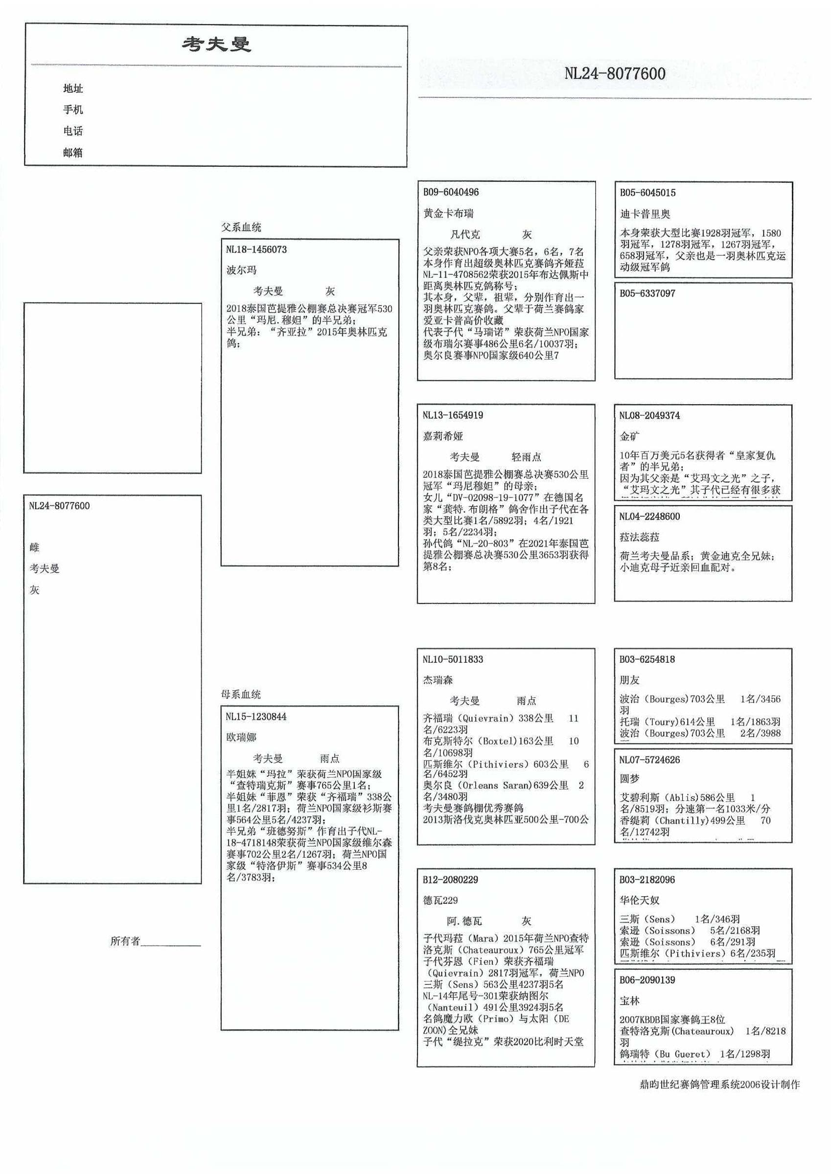 代表子代获得  1名   17,000羽 (荷玛兄弟使翔)