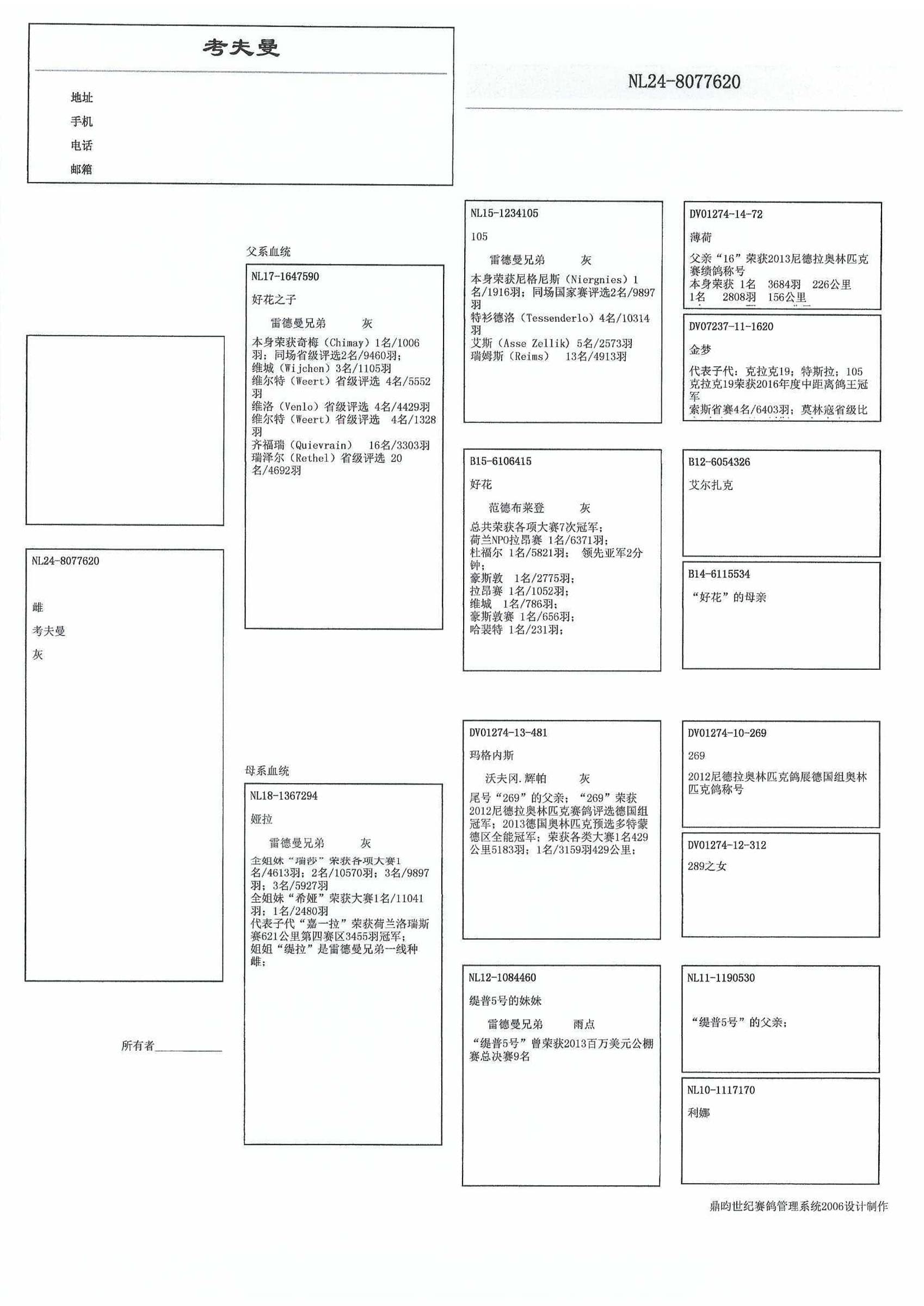 DV17-691” (11名 德国全国鸽王排位沃夫冈.辉帕 原舍)