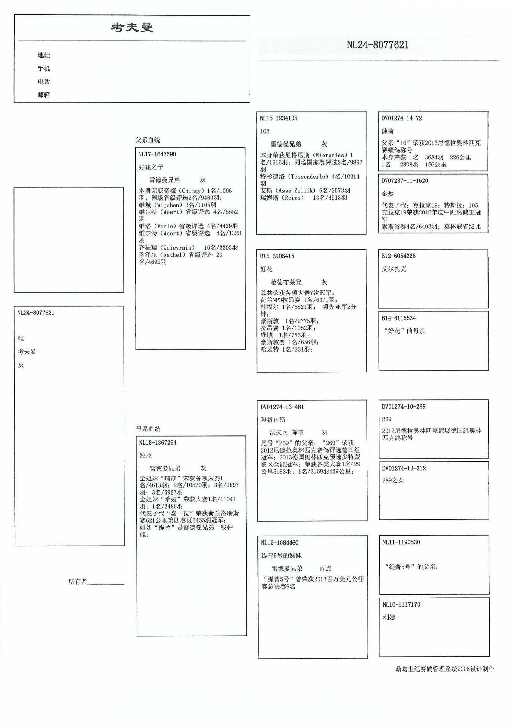 “DV17-691” (11名 德国全国鸽王排位沃夫冈.辉帕 原舍)
