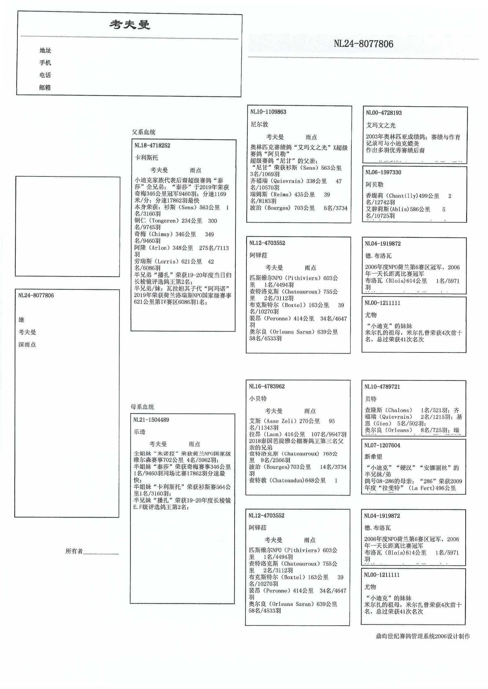 出自 “尼尔敦” (“艾玛文之光” x “阿贝勒”) x “阿铎拉” ( “德.布洛瓦” x “尤物”)
