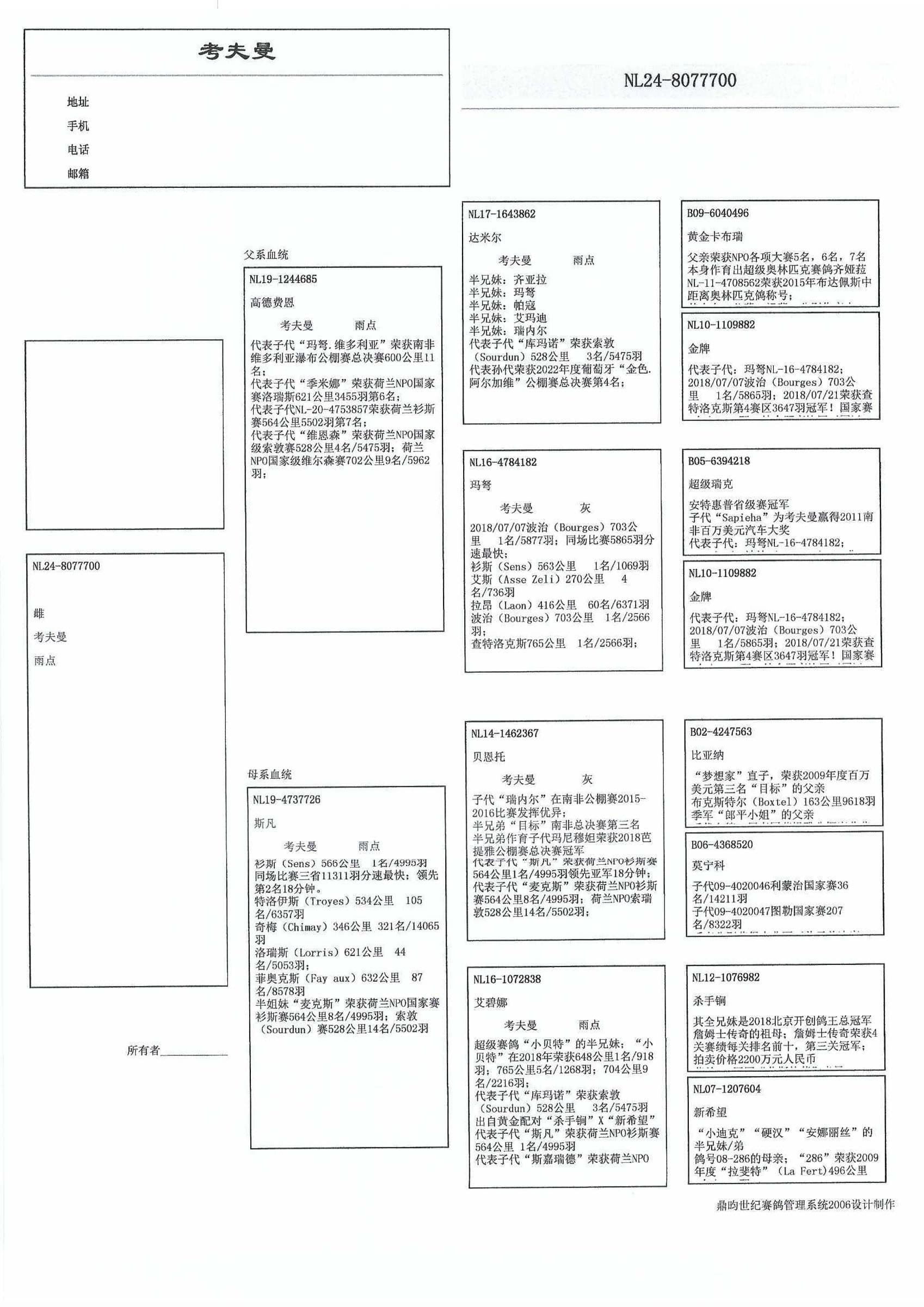 “达米尔” (出自 “黄金卡布瑞” x“金牌”) x 它的半姐妹 世界名鸽“玛弩” (1名 NPO 第四赛区 查特鲁 3,647羽 - 最快 19,192羽 – 1名 NPO 第四赛区波治5,877羽– 1名 衫斯1,069羽)