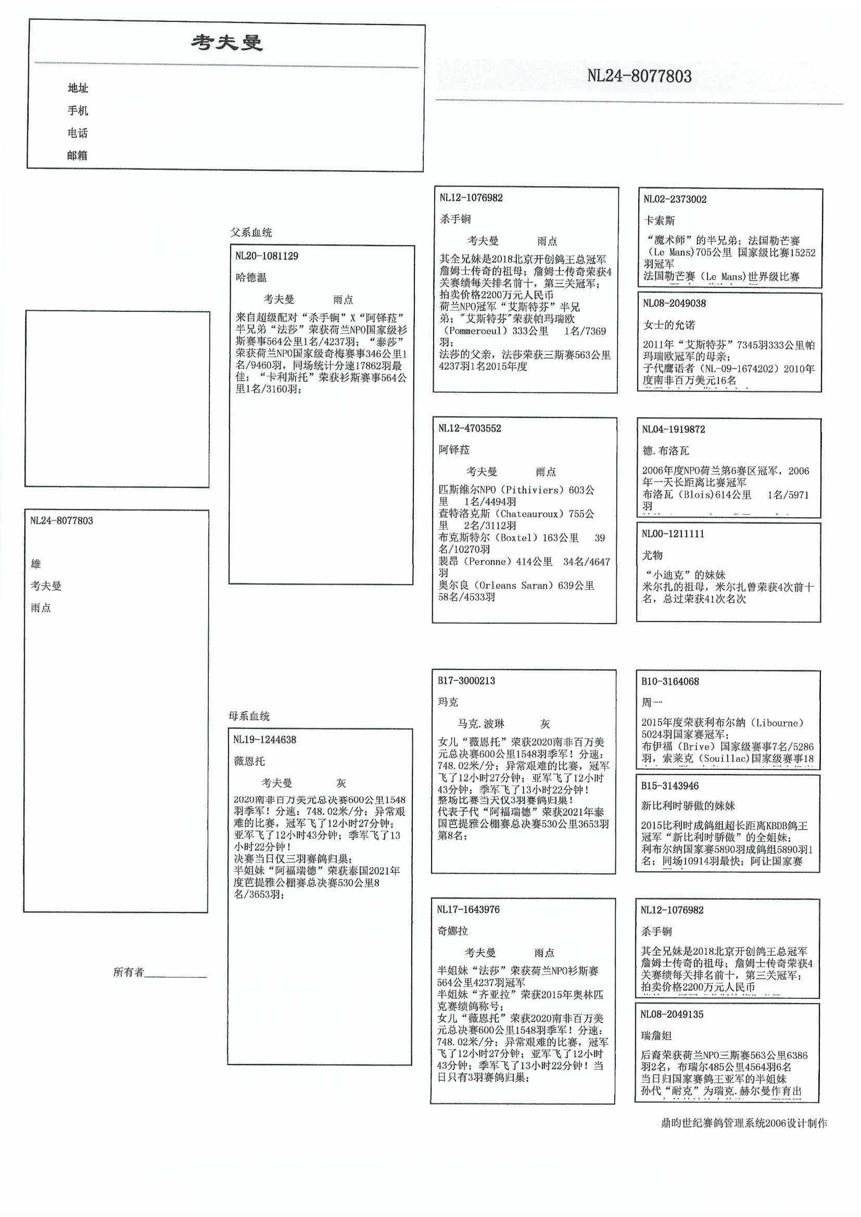 “周一” (1名, 7名, 18名, 42名和 81名 全国 入赏) x “新比利时骄傲的妹妹”(全姐 1名 全国 鸽王评选 和 1名 全国 利布尔纳 入赏 “新比利时骄傲 ”)