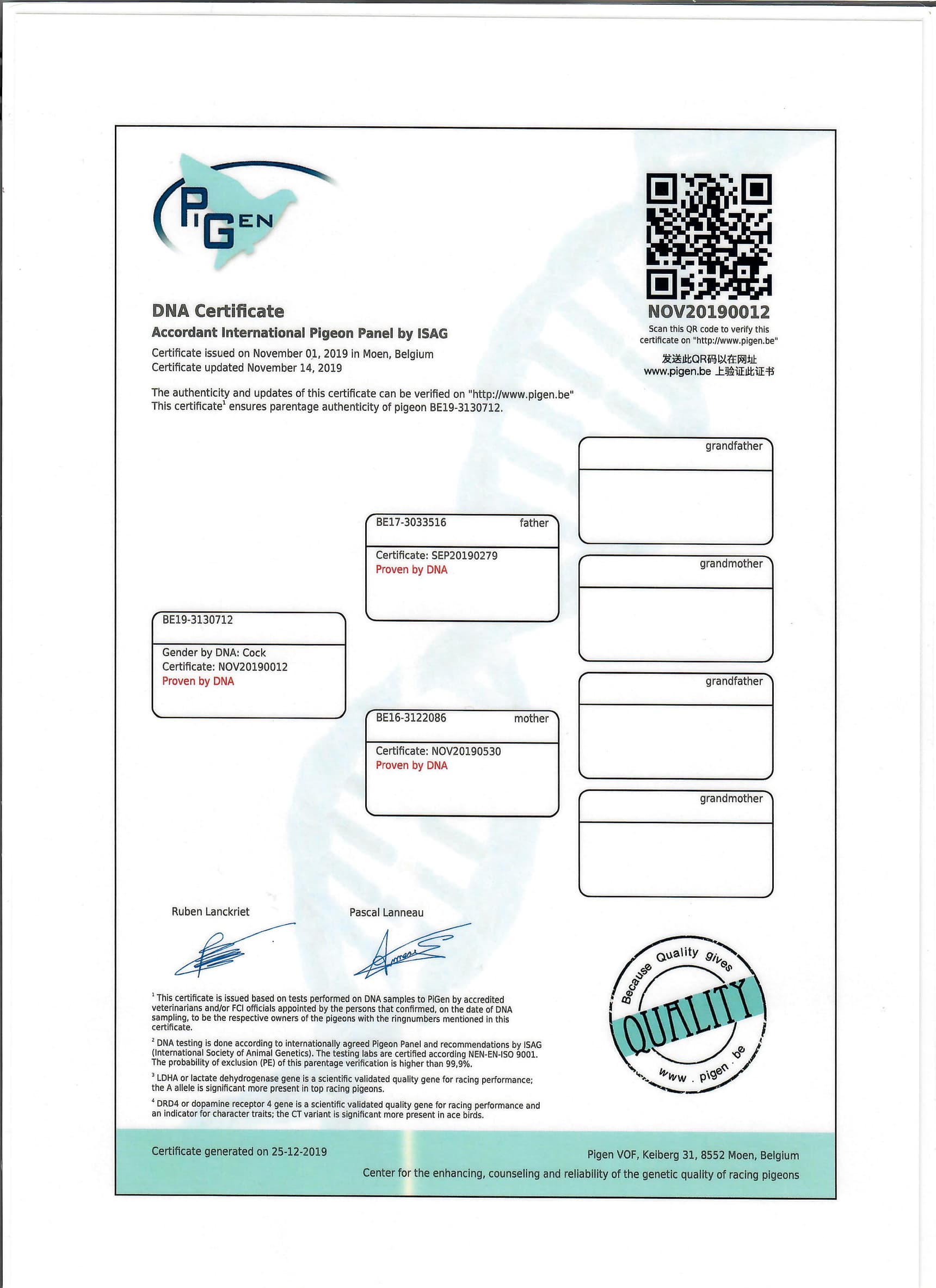 1名 全国 亚精敦 “西洛西洛”x 1名 省级 鸽王 KBDB “帕普隆”