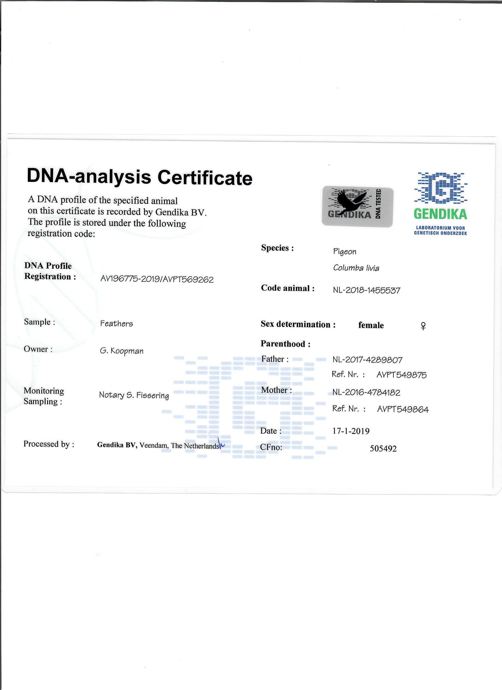 出自配对:世界名鸽 “哈利” x “艾斯美” (1名  国家赛鸽王 ’14)