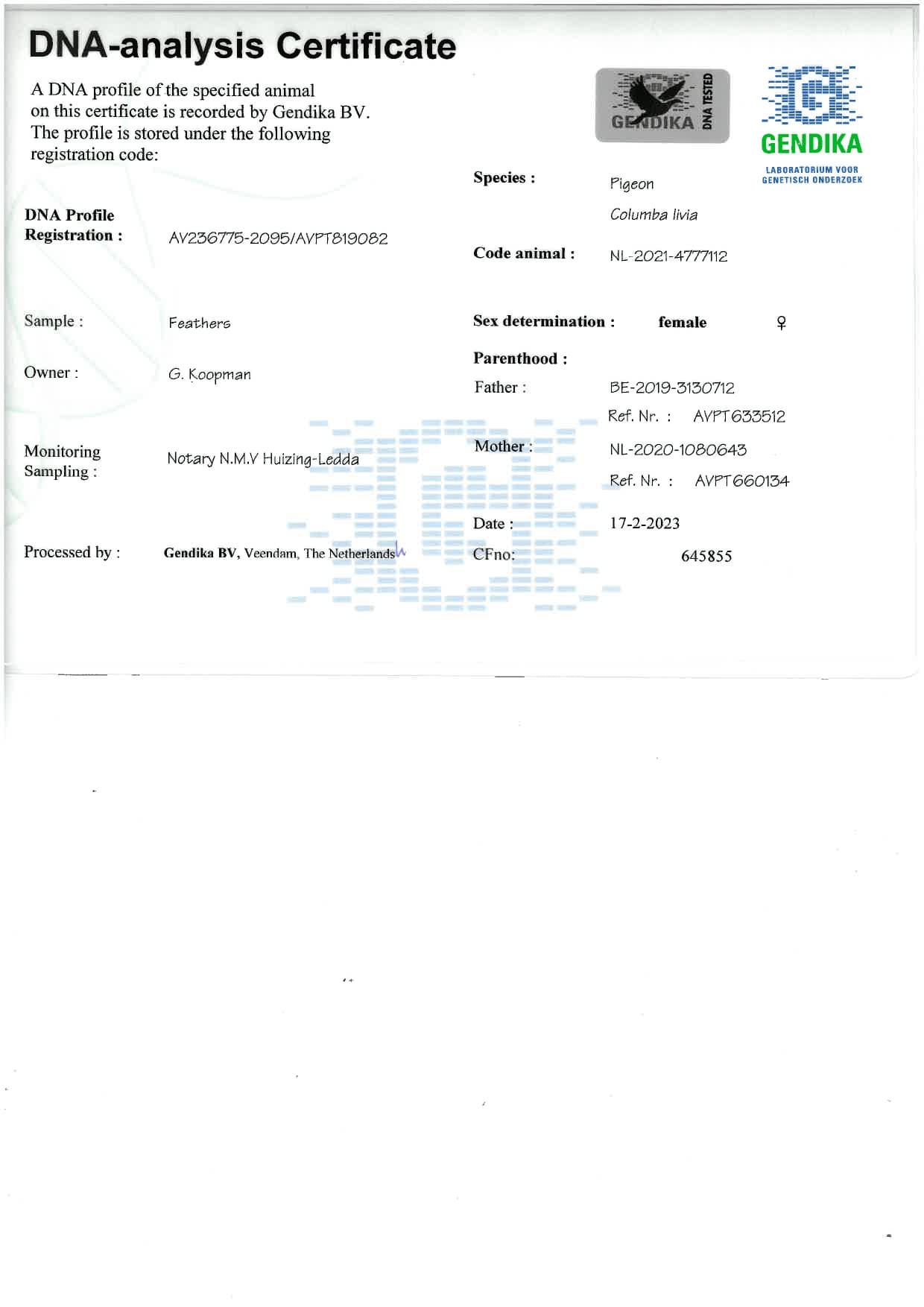 1名 全国 亚精敦 冠军 “西洛西洛”x 1名 省级 鸽王 KBDB “帕普隆”