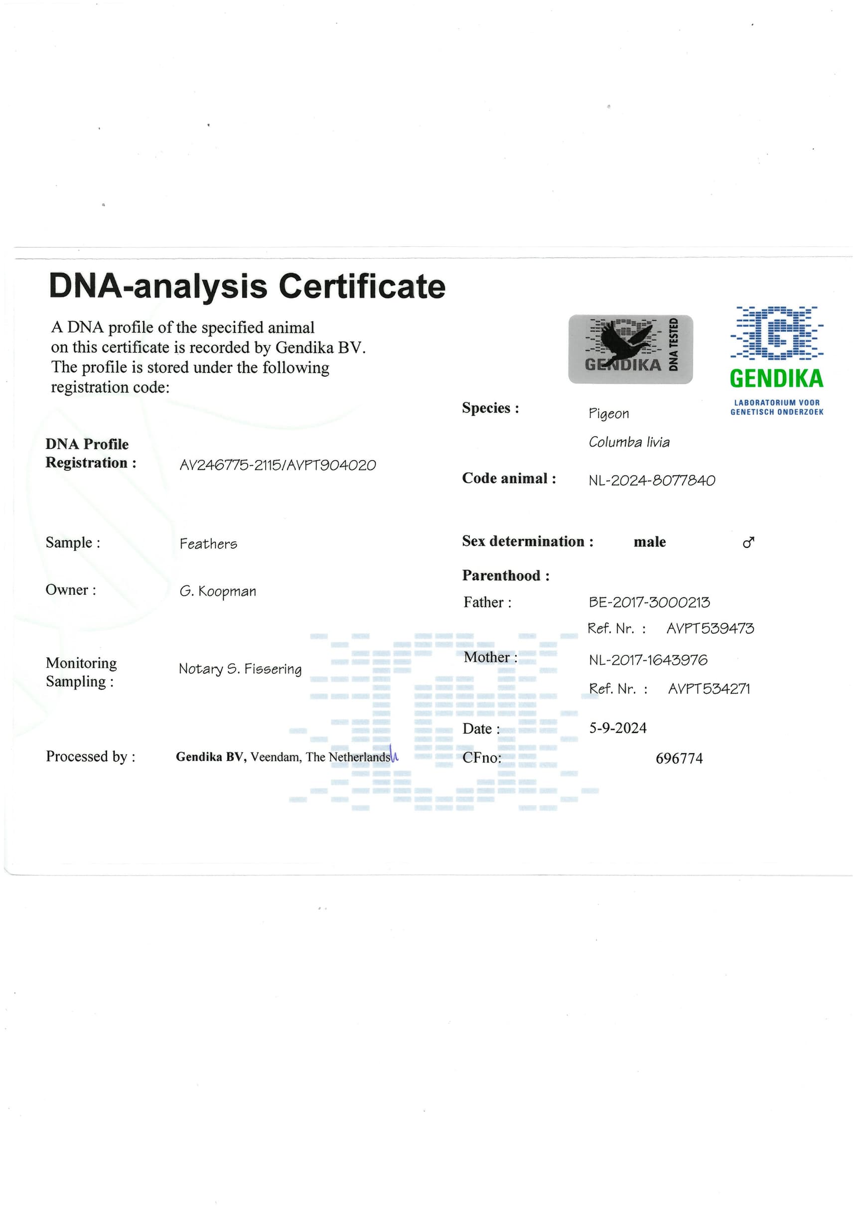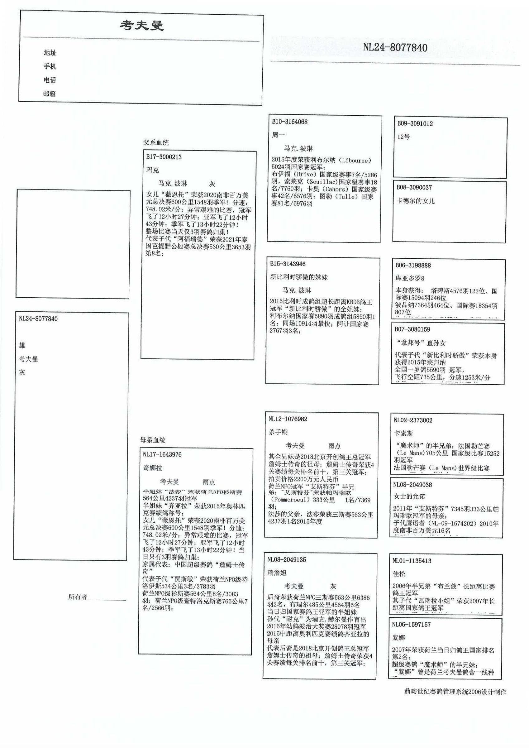 “杀手锏” x “瑞詹妲”(代表孙代 “耐克” -1名 全国波治28,078羽瑞克.贺尔曼原舍-  和 奥林匹克鸽 “齐亚拉”)