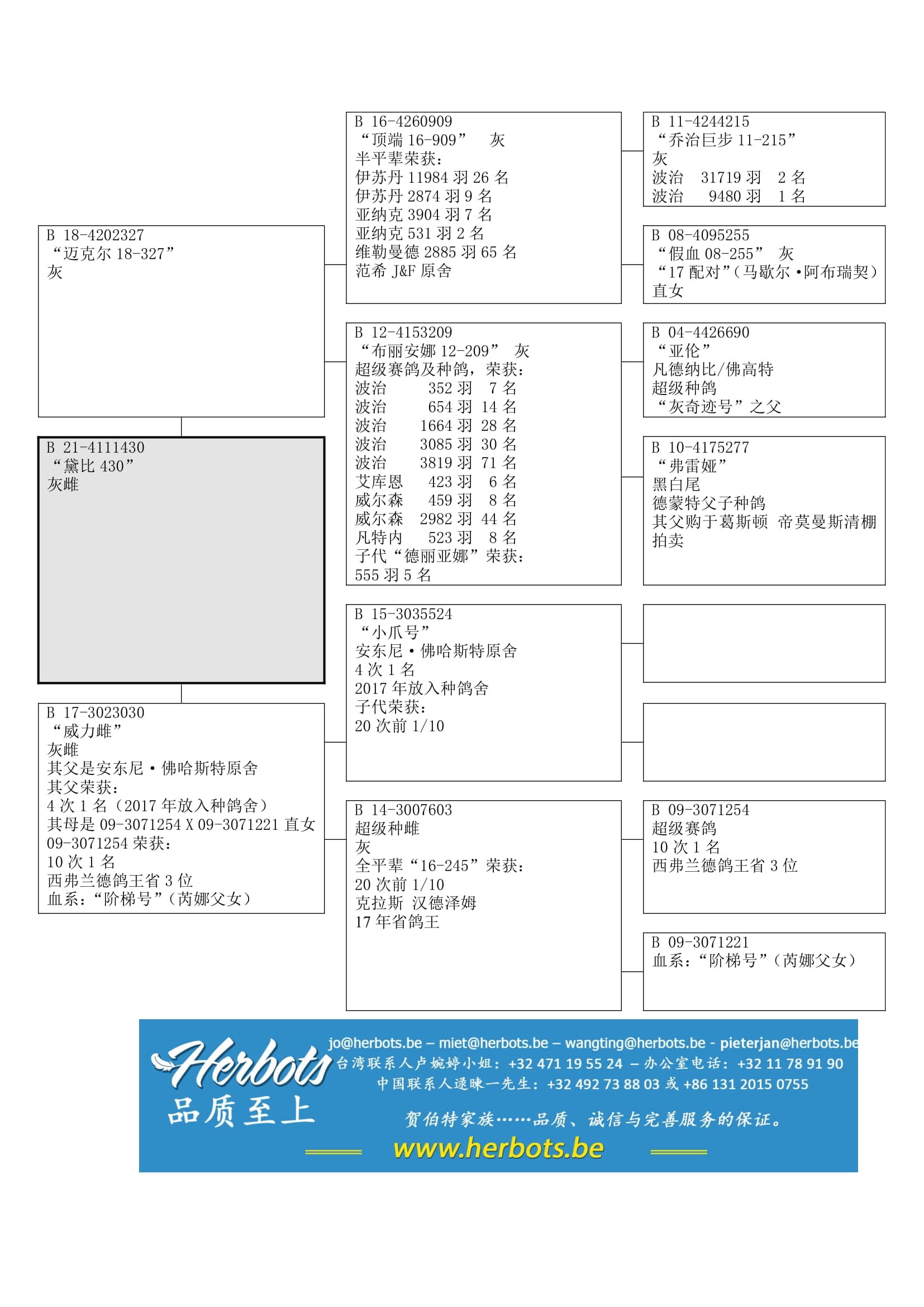 顶级雌鸽“德丽亚娜” (伊苏丹省赛 4,269羽1名) 之母