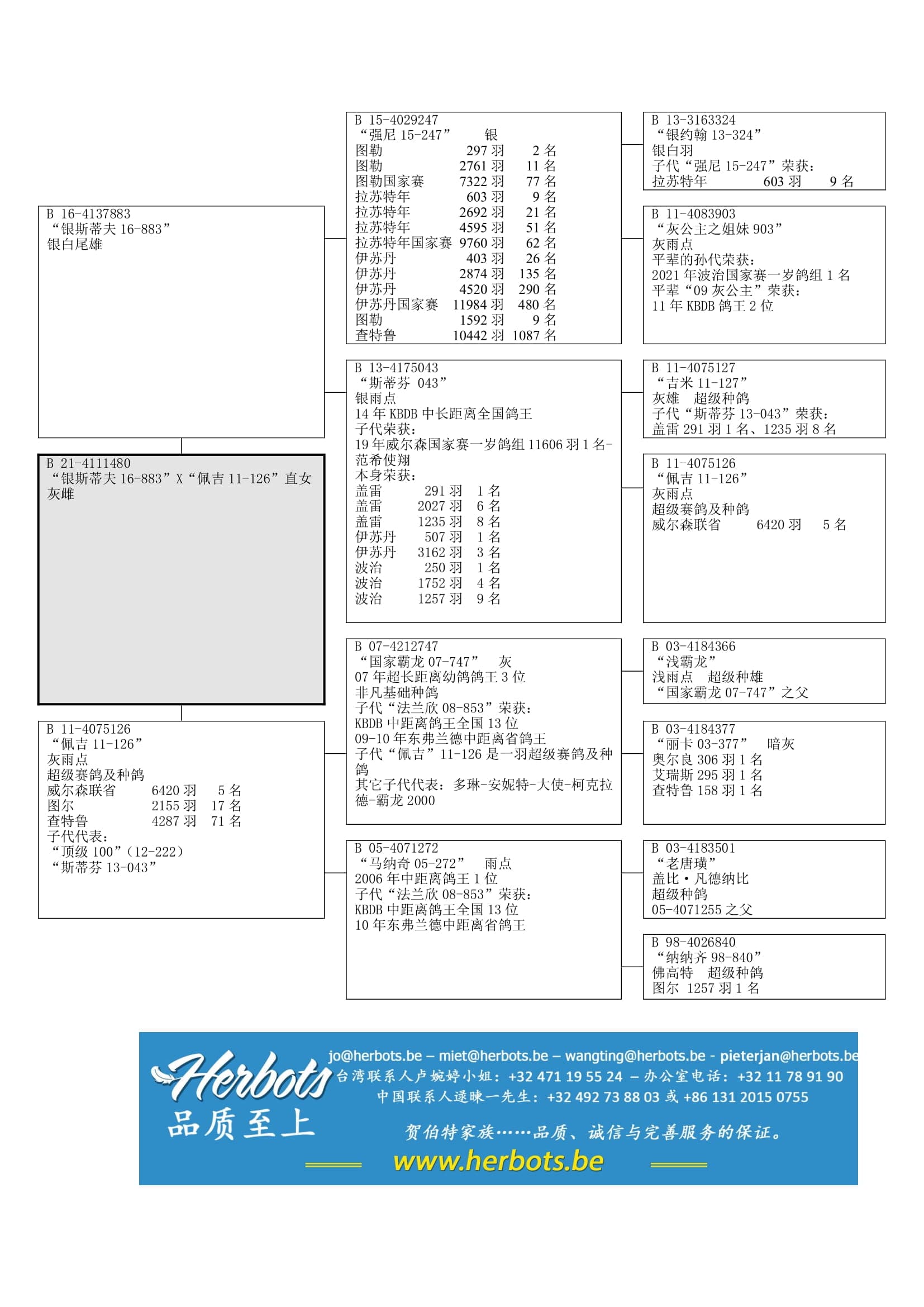 “霸龙 747” (幼鸽鸽王1位 – 以及基础种鸽) x “马纳奇” (俱乐部中距离鸽王1位)作出