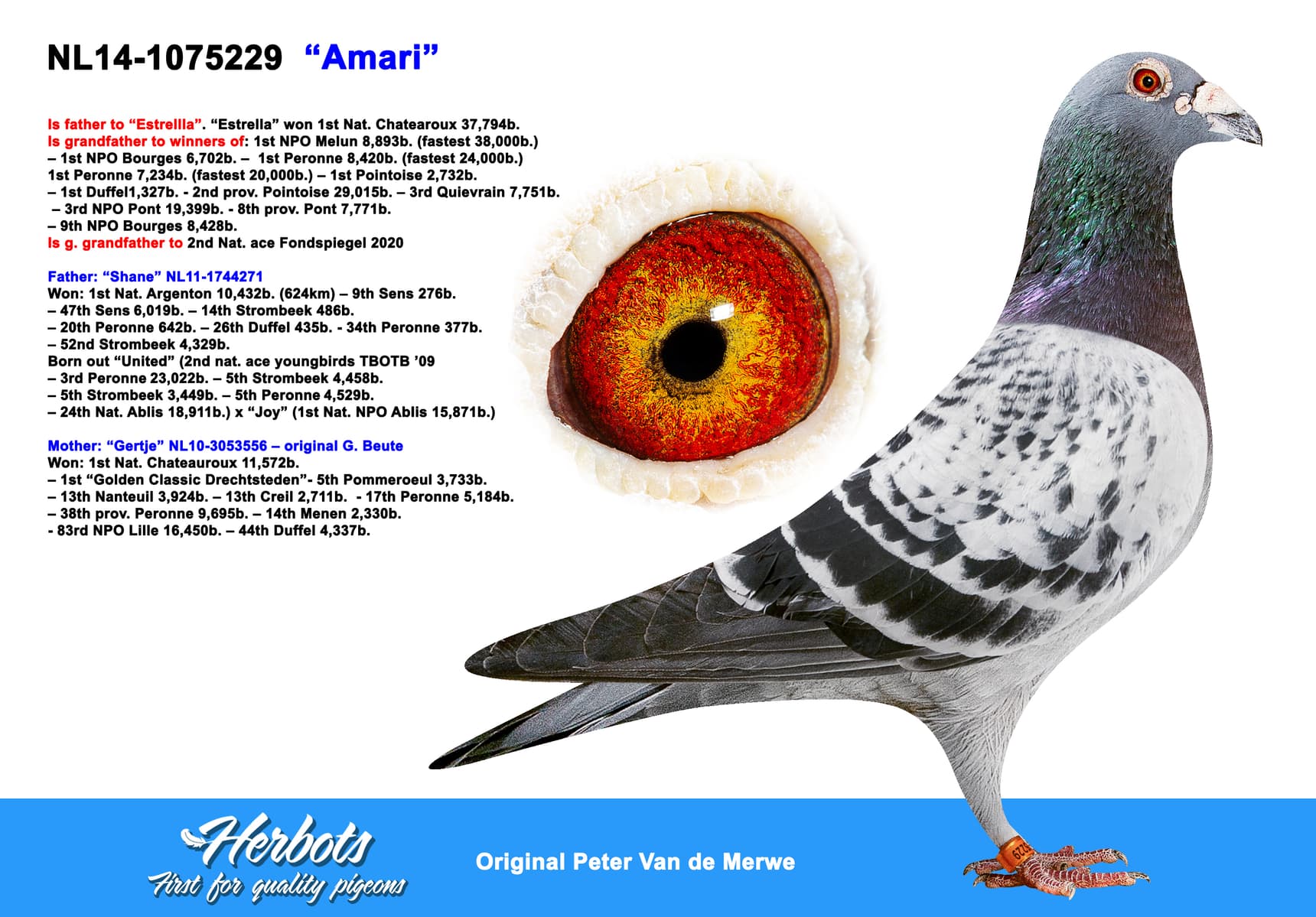 Auctioned together with NL14-1075229 & NL14-1075205“埃斯特里拉”之全兄弟. “埃斯特里拉” 荣获:查特鲁国家赛 37,794羽1名