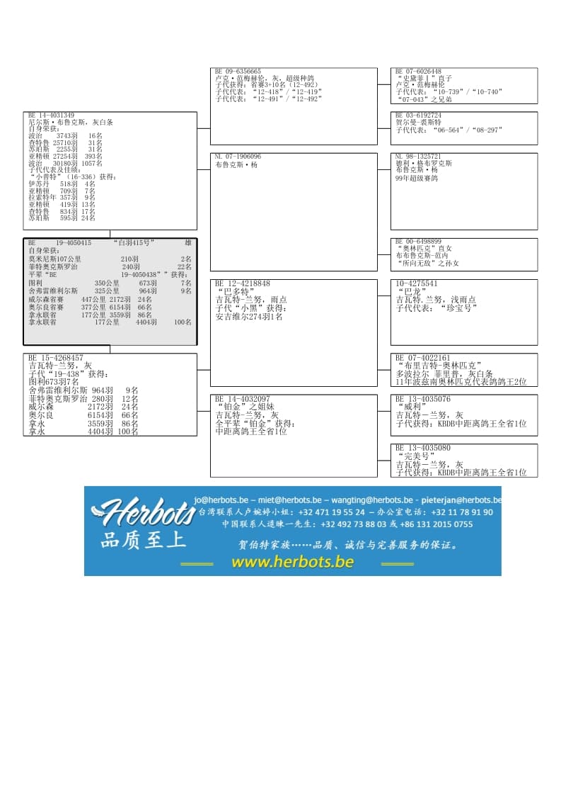 自身荣获:莫米尼斯210羽2名平辈获得:图利 673羽 7名舍弗雷维利尔斯 964羽 9名威尔森省赛 2172羽 24名奥尔良省赛 6154羽 66名血统:尼尔斯·布鲁克斯X吉瓦特-兰努
